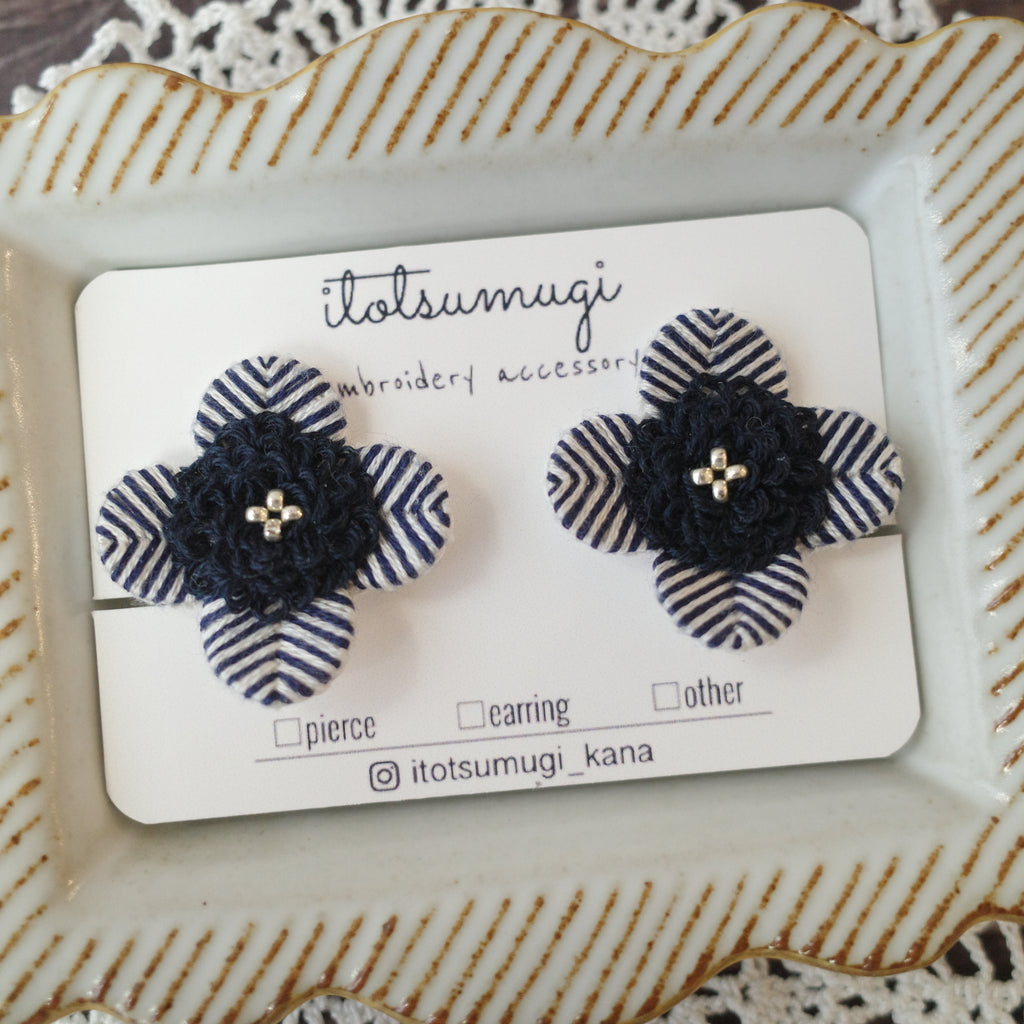 itotsumugi Handmade Accessories - Black x White Flower Earrings No.5 & 6