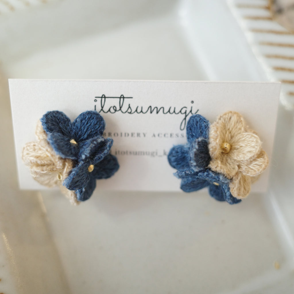 itotsumugi Handmade Accessories - Little Flower Earrings (Beige x Navy) No.3