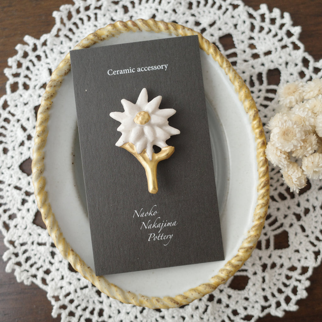 Naoko Nakajima Handmade Ceramic Brooch - Edelweiss