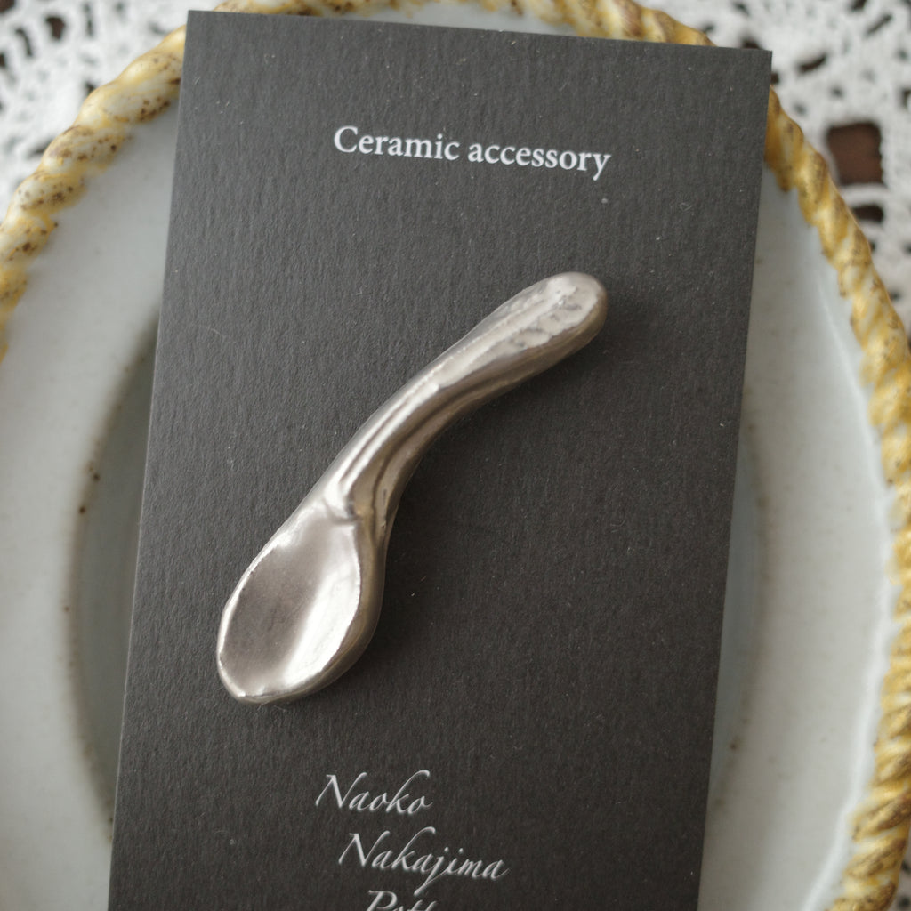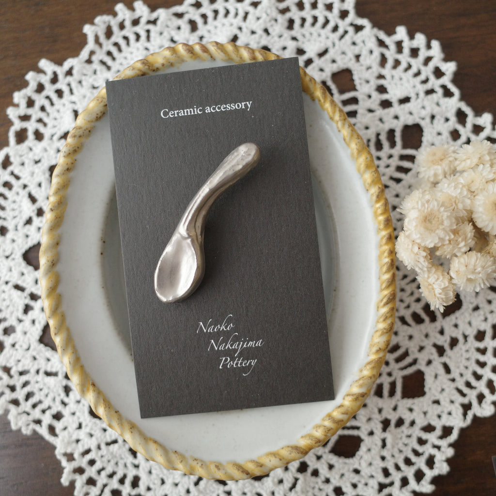 Naoko Nakajima Handmade Ceramic Brooch - Spoon Platinum