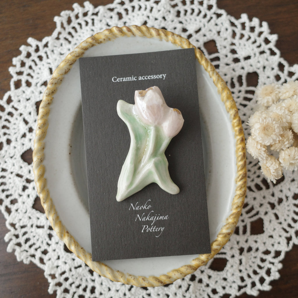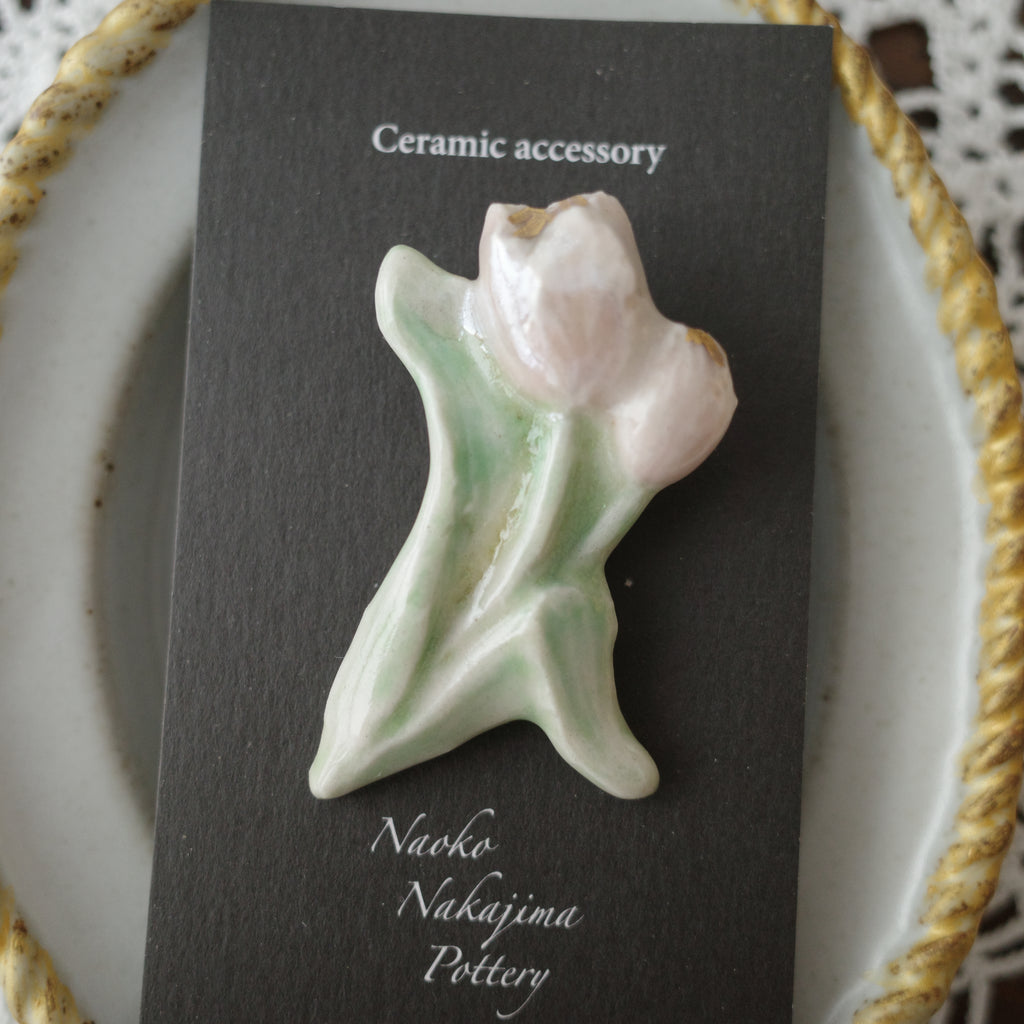 Naoko Nakajima Handmade Ceramic Brooch - Tulip (Pink)