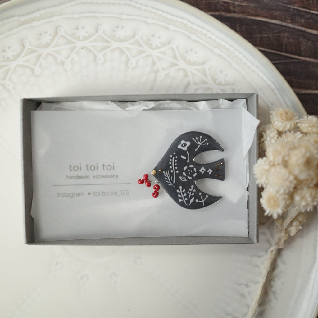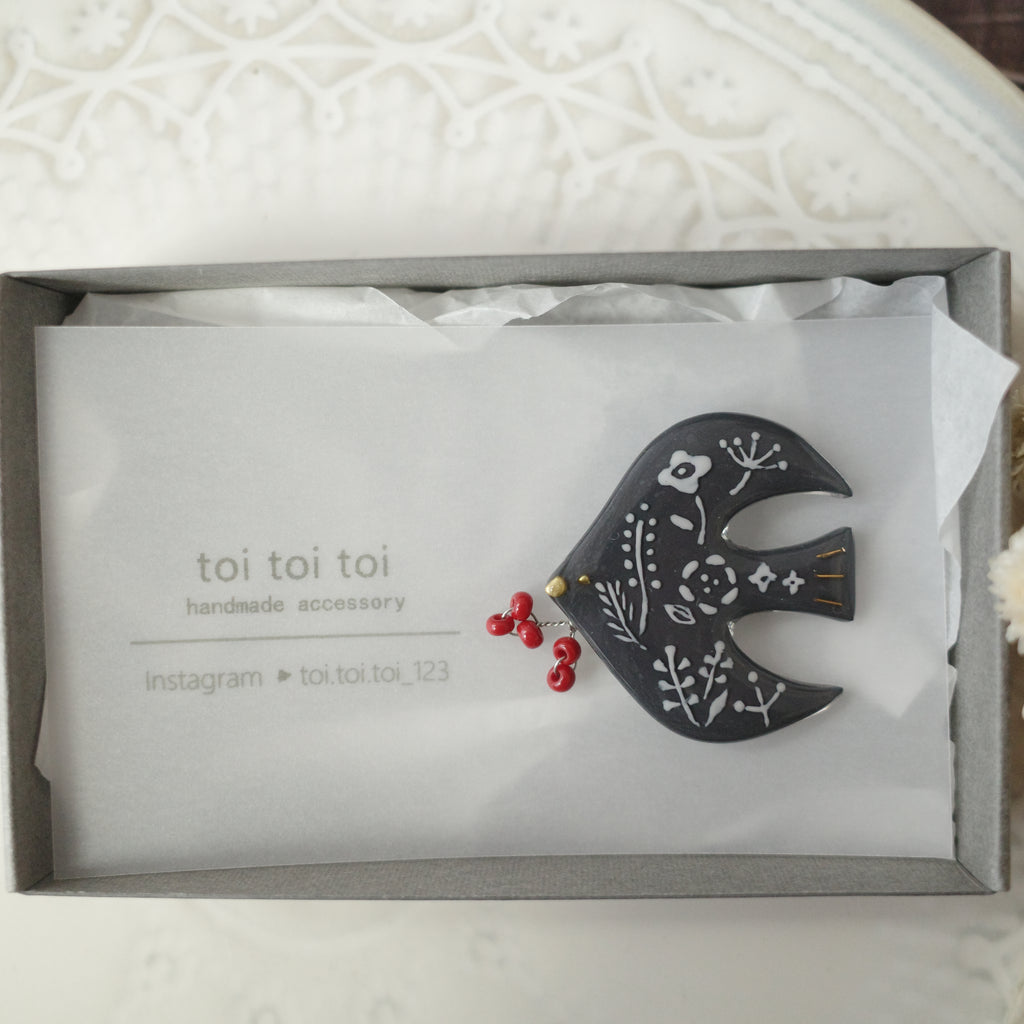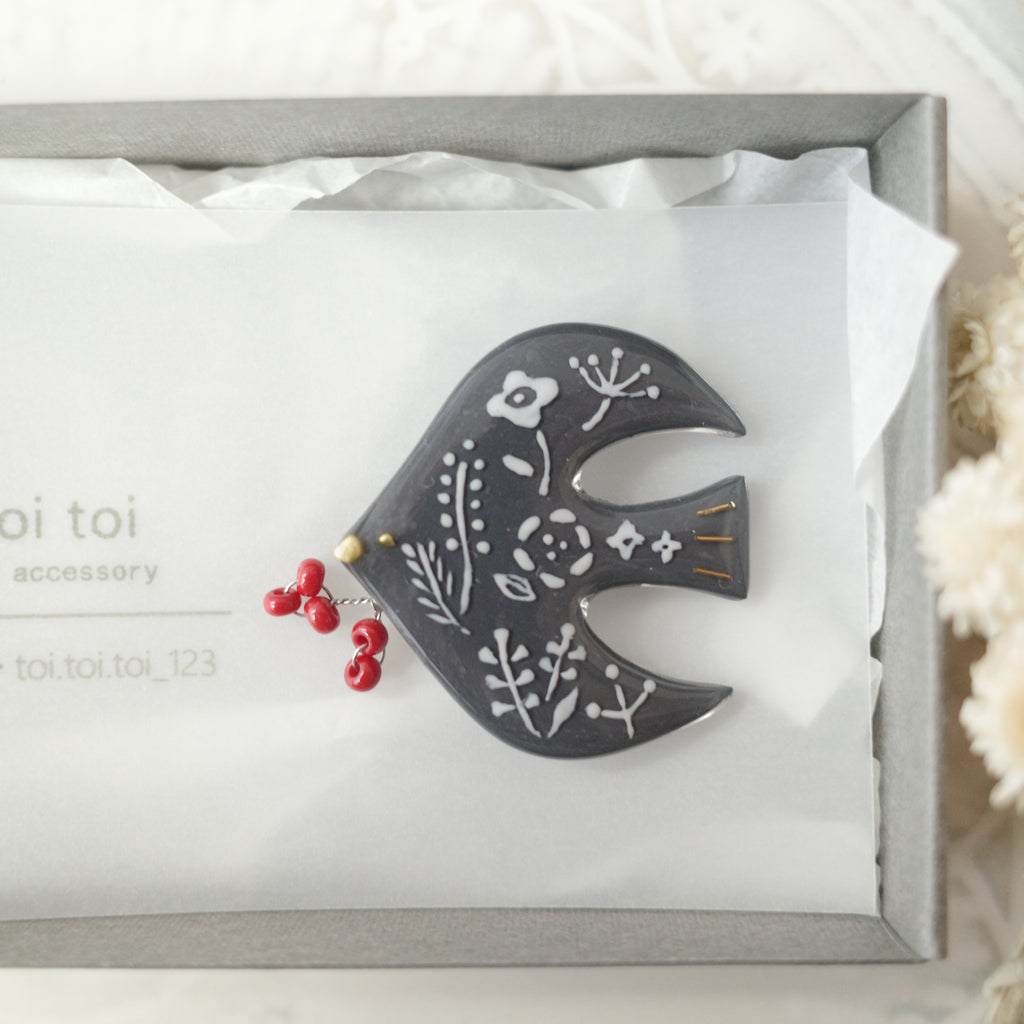toi toi toi Handmade Accessories - Brooch Bird with Red Seed (Pre-order)
