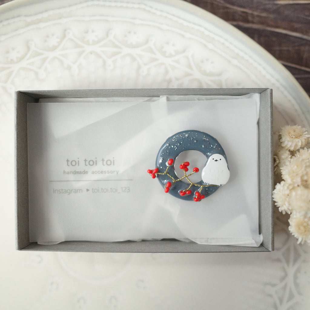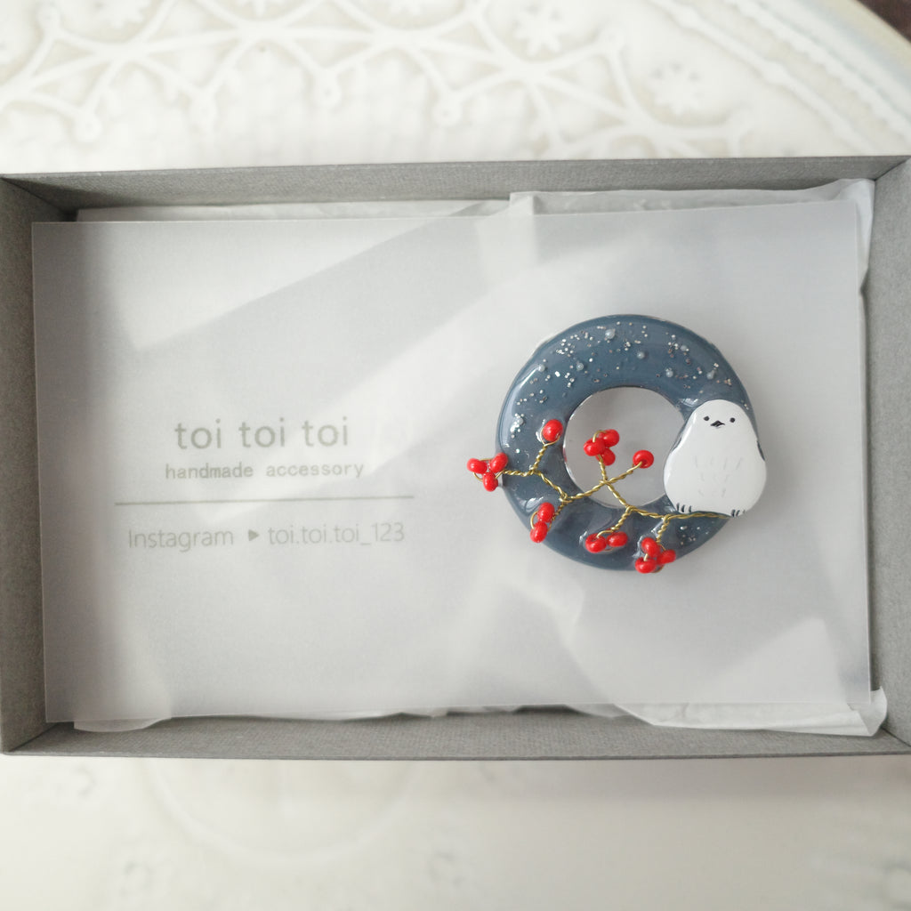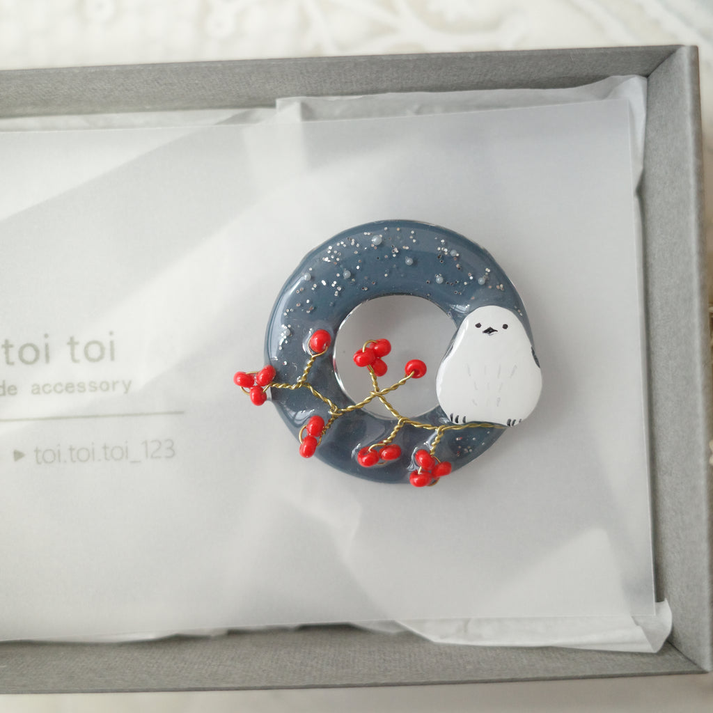 toi toi toi Handmade Accessories - Brooch Circle Long-tailed tit (Pre-order)