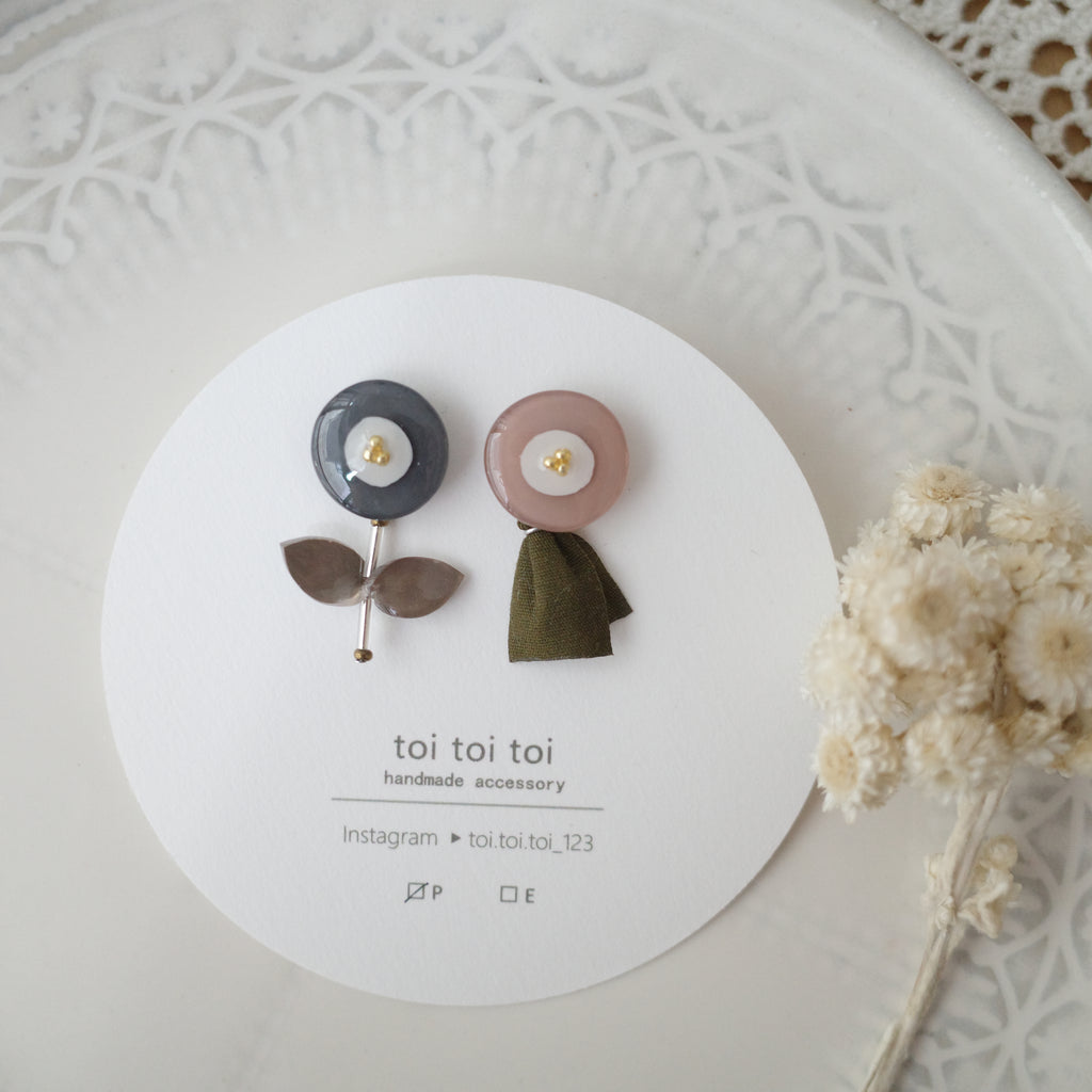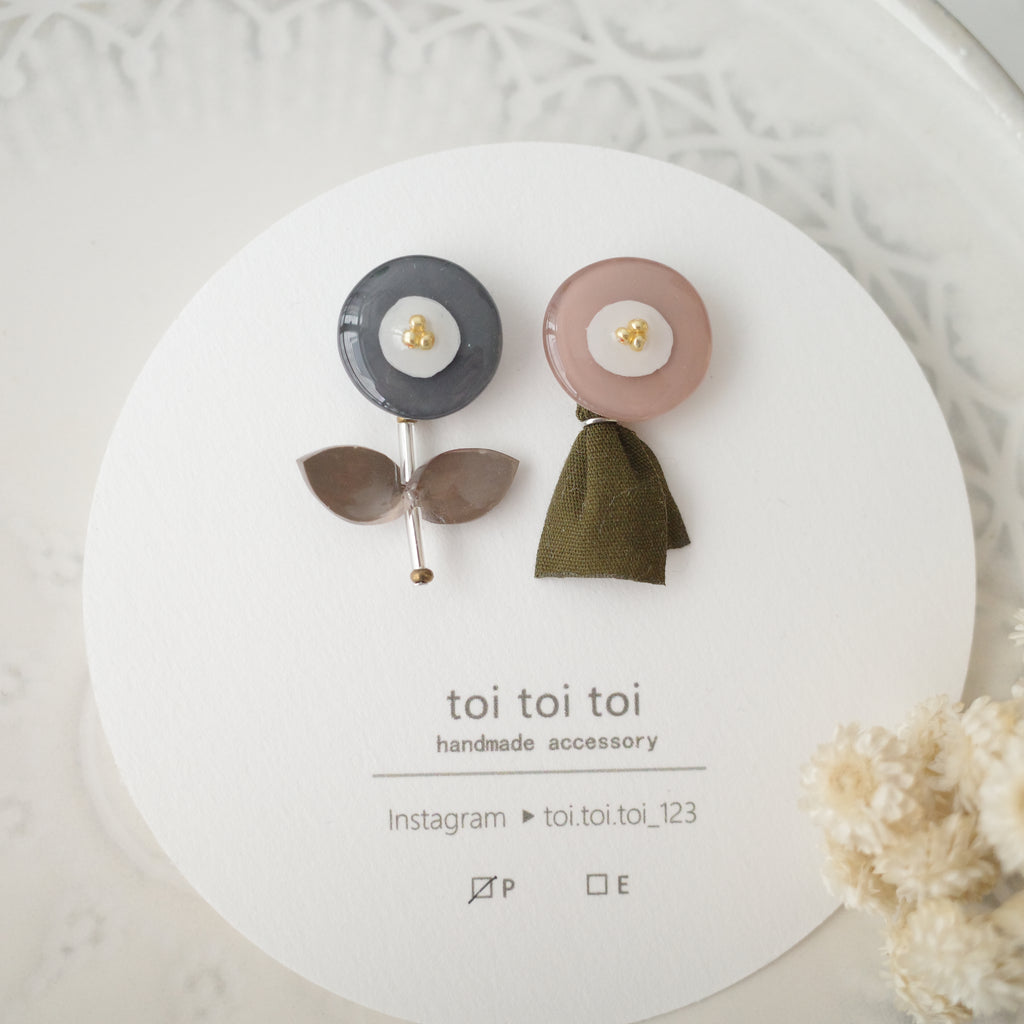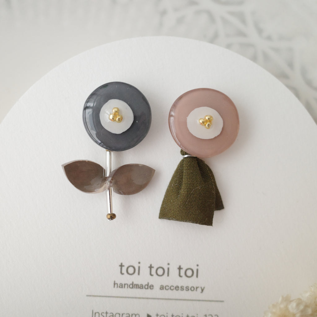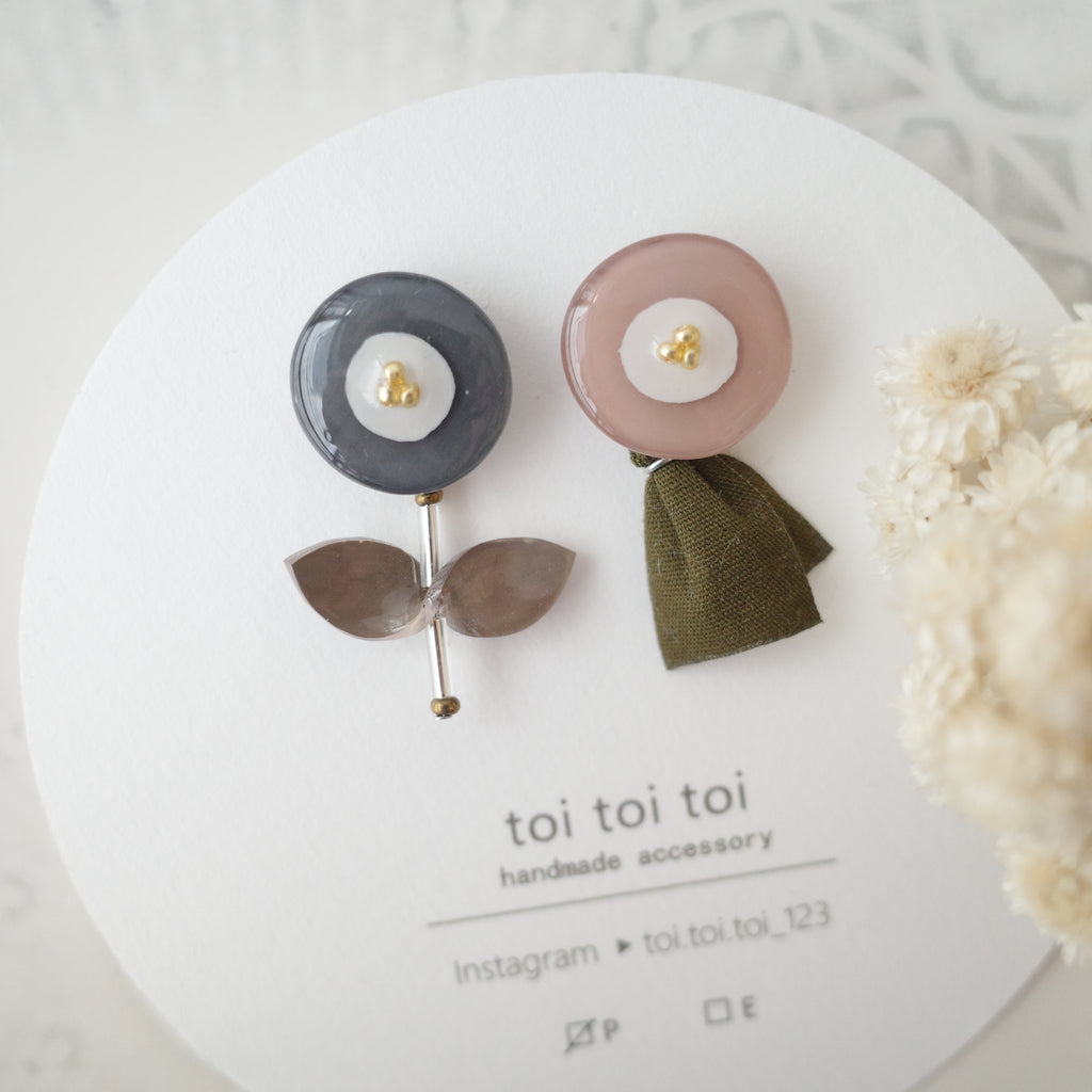 toi toi toi Handmade Accessories - Flower Earrings (Dark Grey x Pink) (Pre-order)
