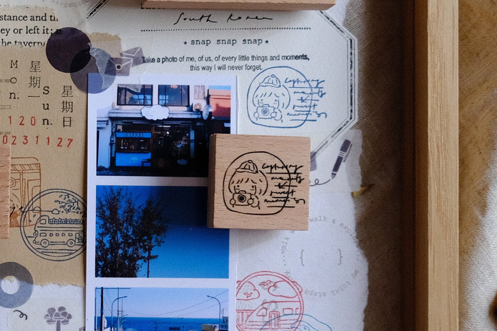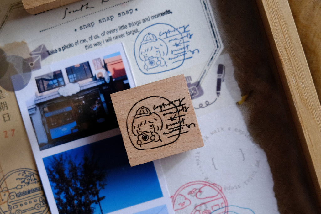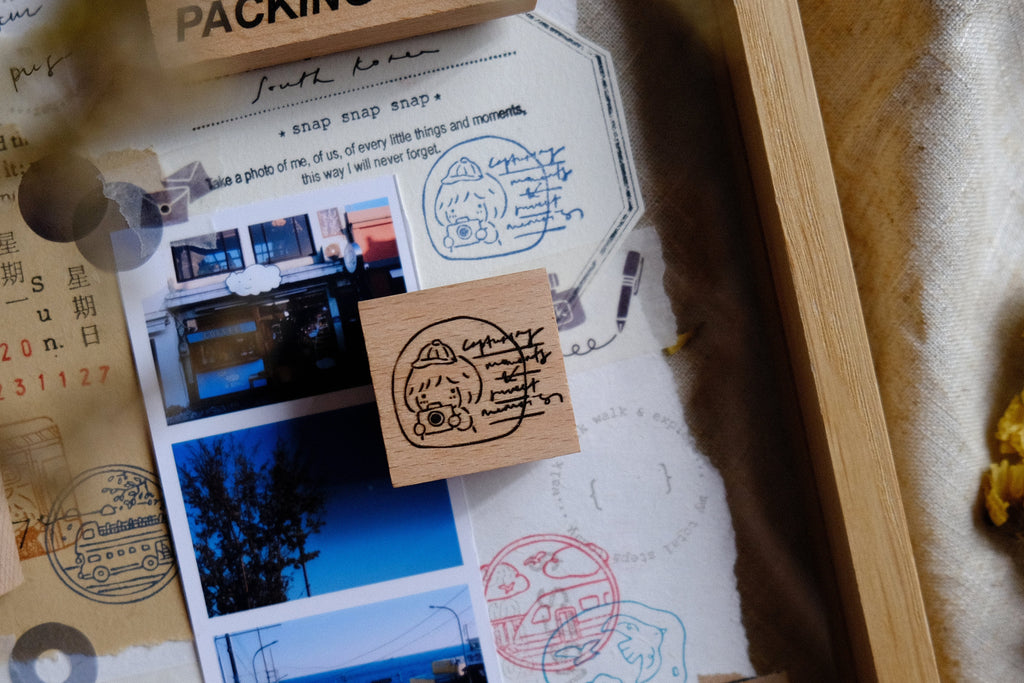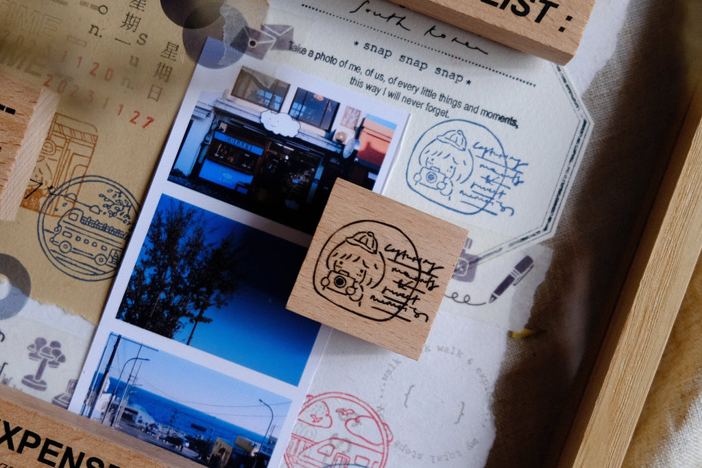 Eileen Tai rubber stamp - Travel Journaling Series: Mini Girl - Capturing moments (camera)