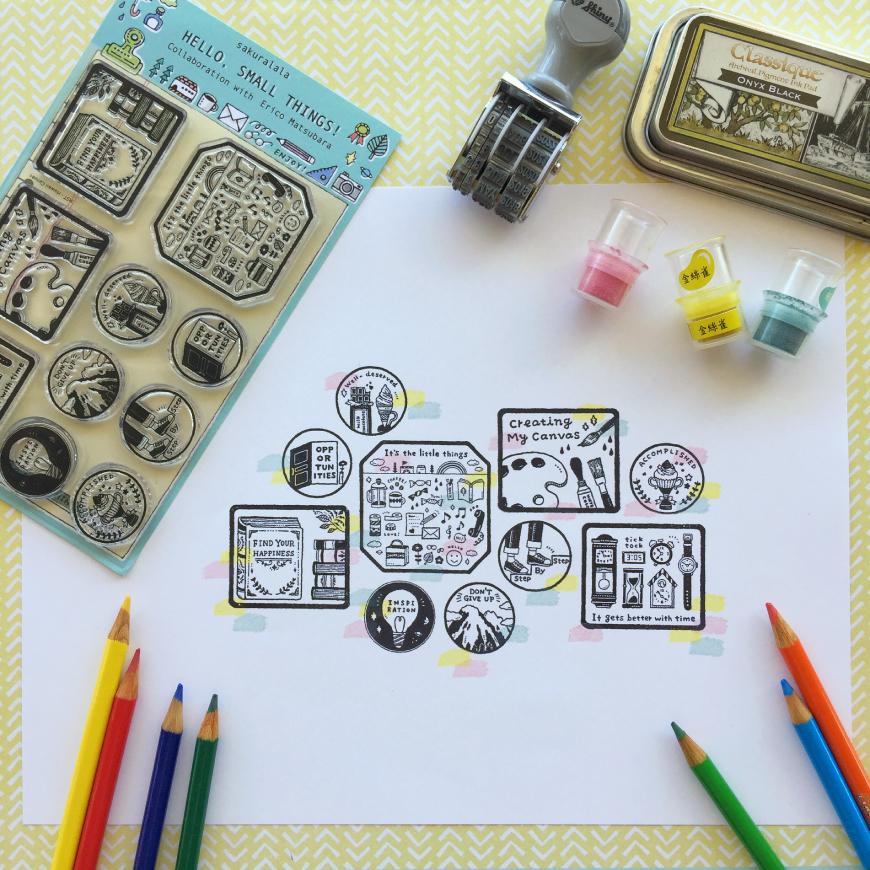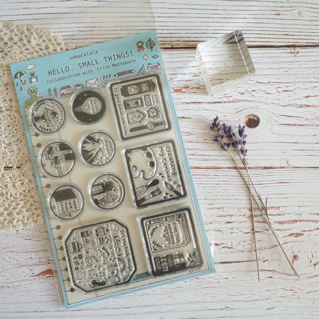 eric is an Japanese artist who does eraser stamp, illustration design. These collection are Sakuralala x eric collaboration, namely "HELLO, SMALL THINGS", are perfect for journaling.