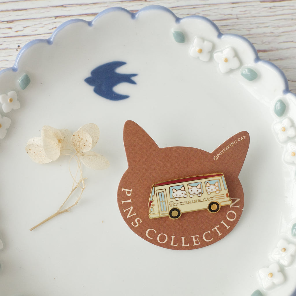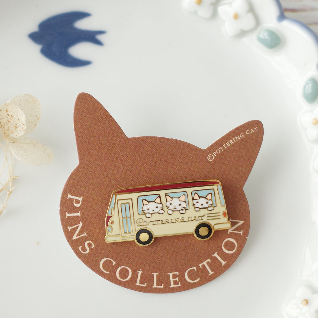 Pottering Cat Pin - Bus