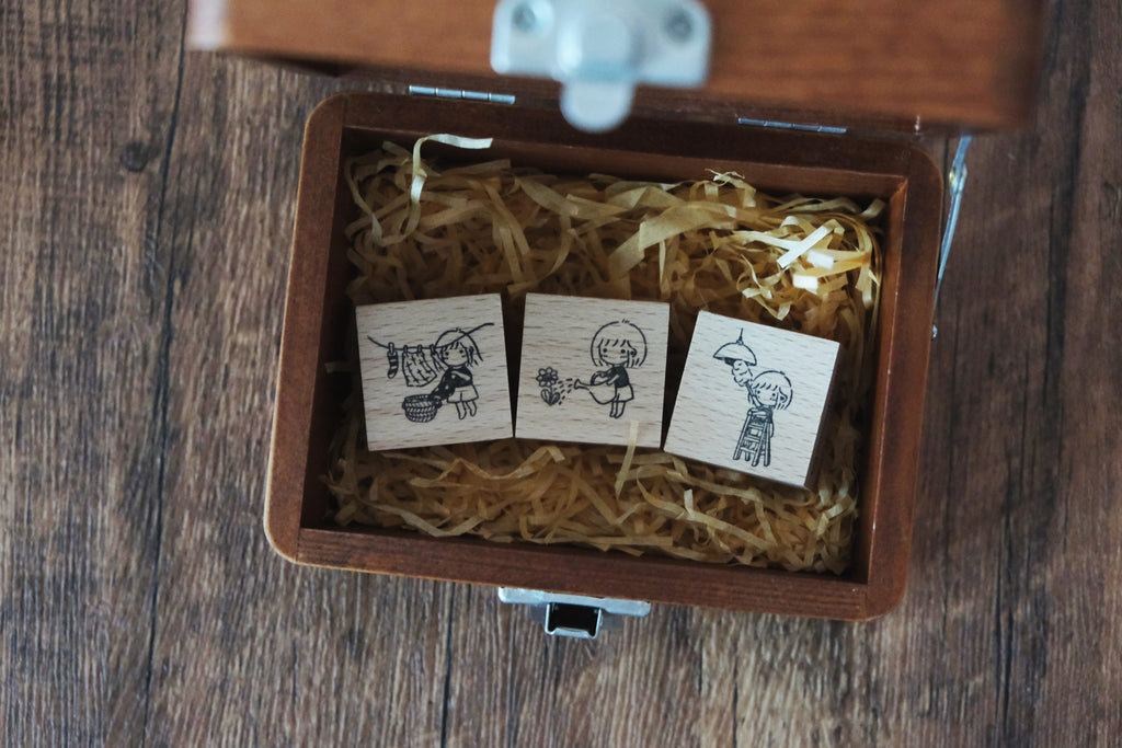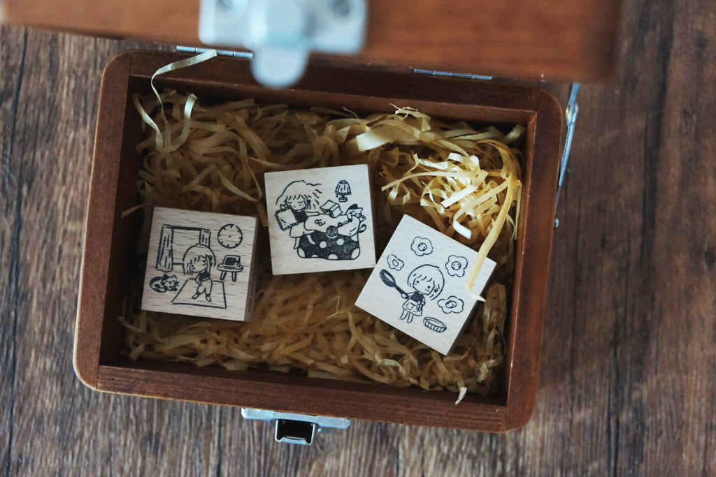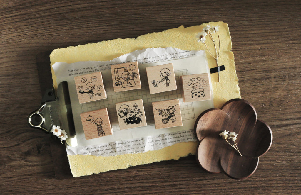 Eileen Tai rubber stamp - Mini Girls: At Home