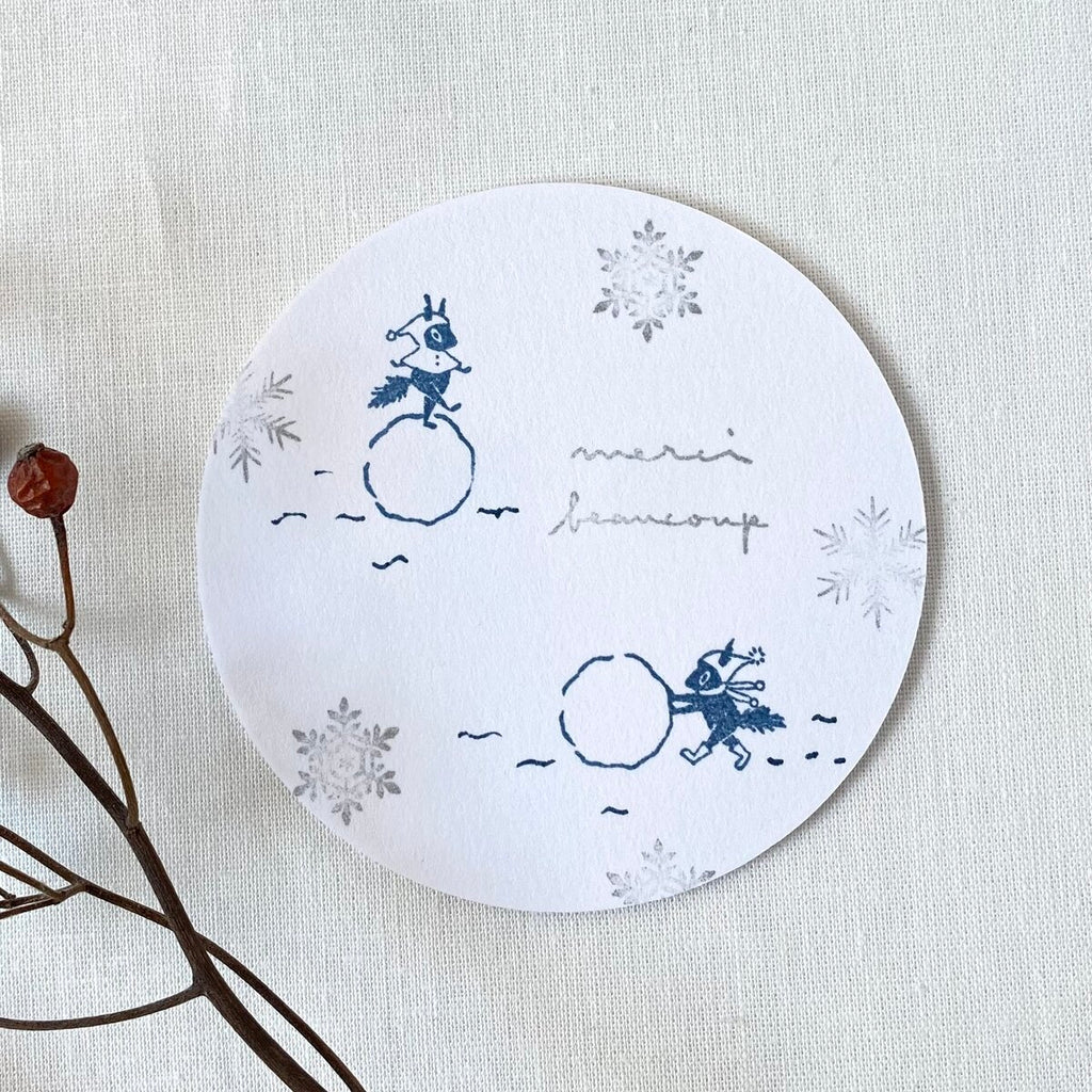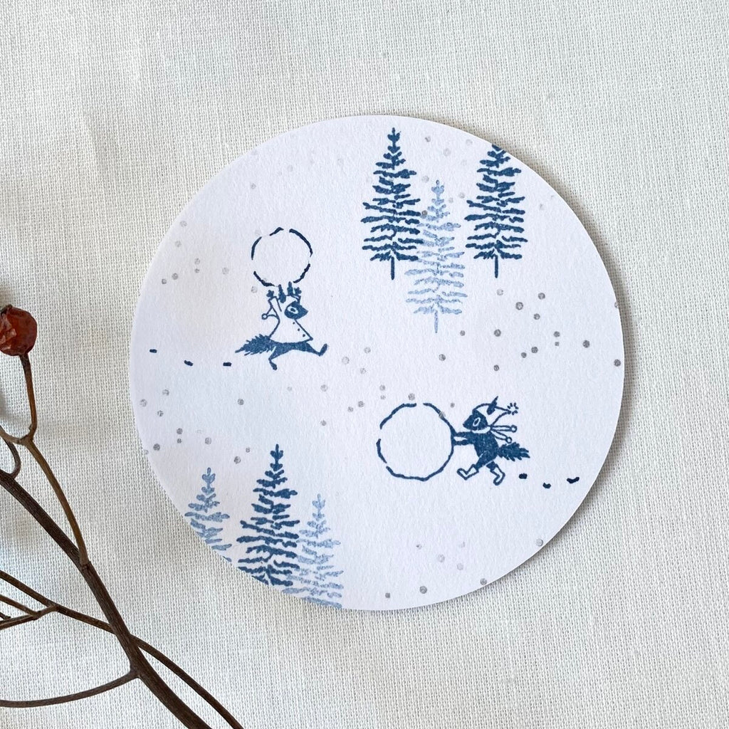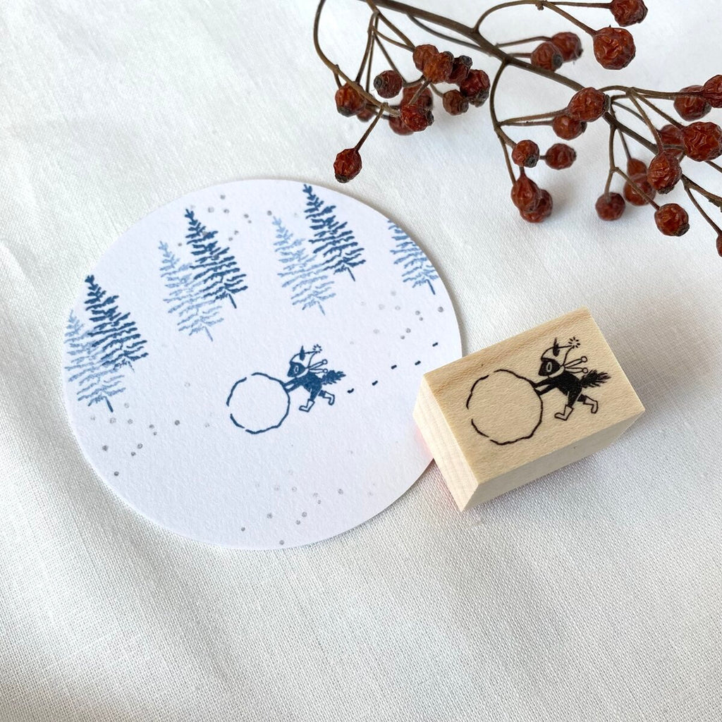 Mori Ringo Rubber Stamp - Squirrel playing snow