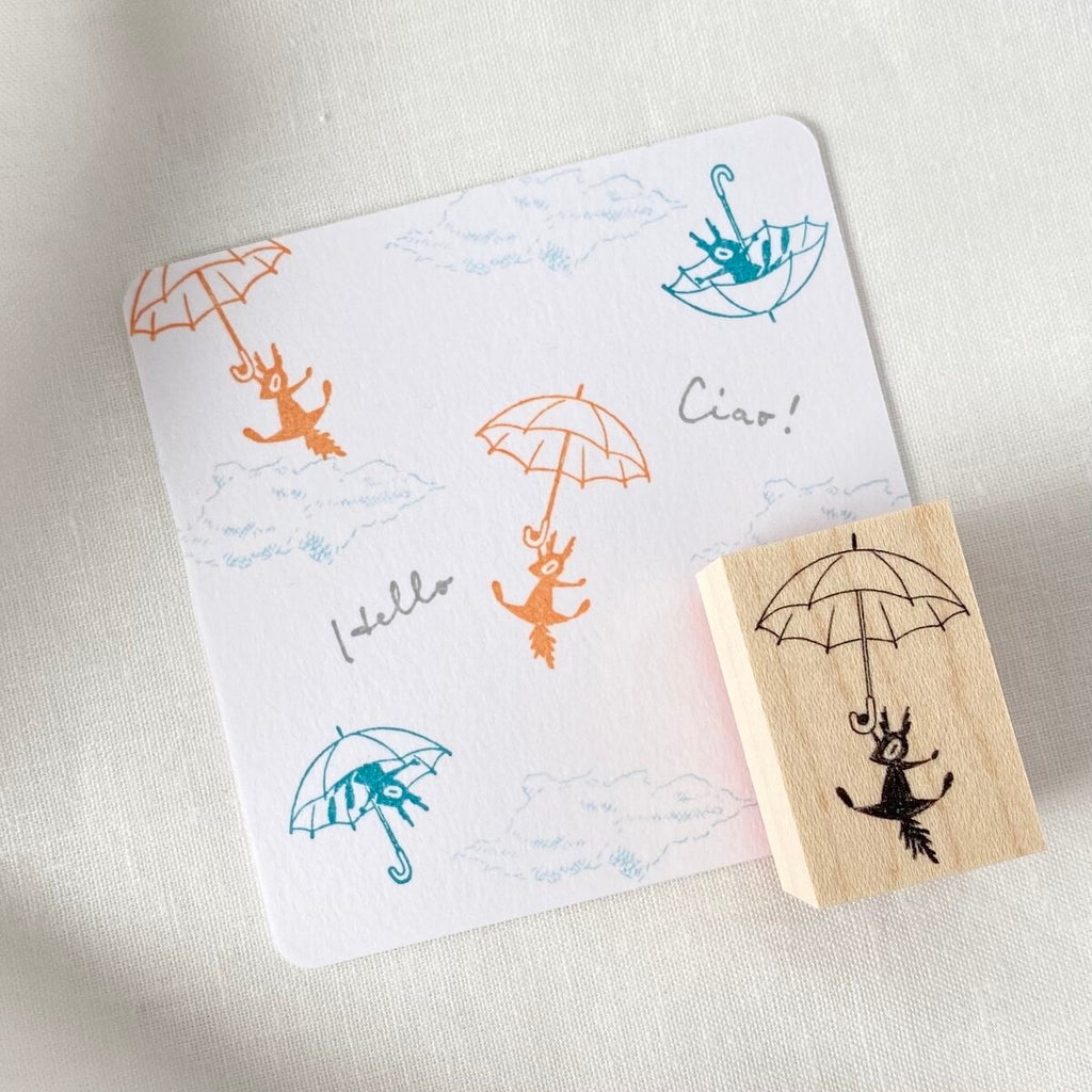 Mori Ringo Rubber Stamp - Umbrella squirrel (left)