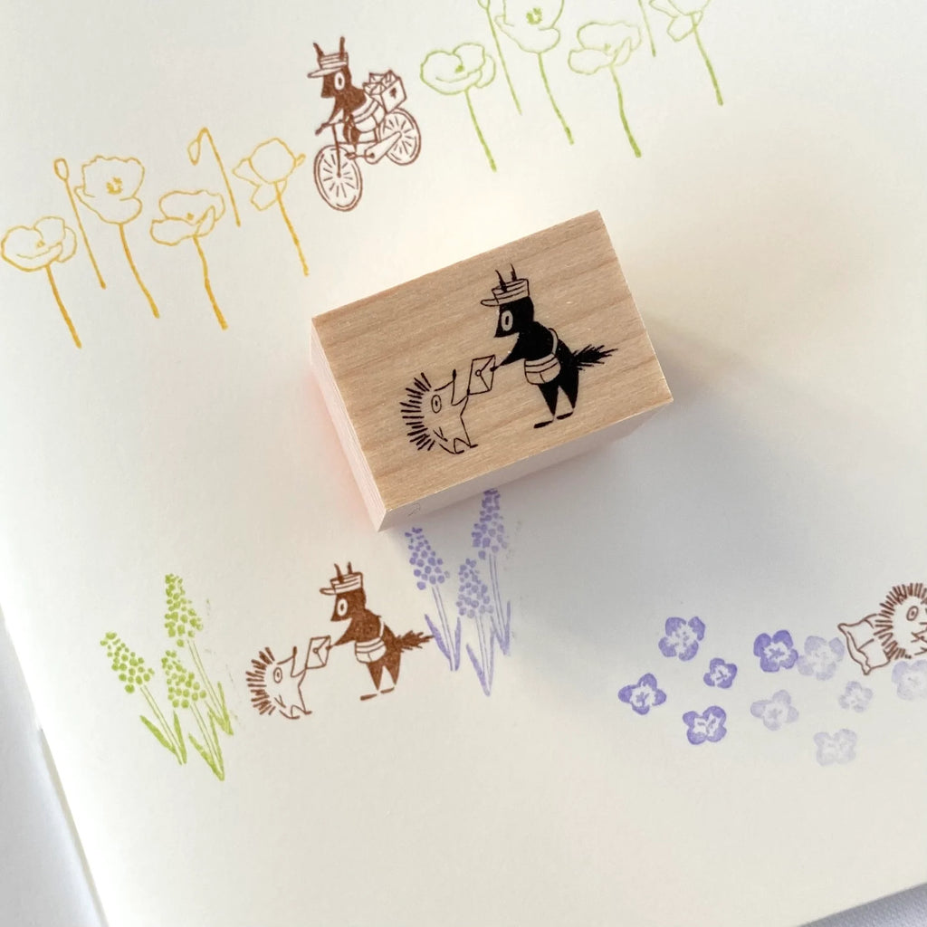 Mori Ringo Rubber Stamp - Hedgehog and postman squirrel