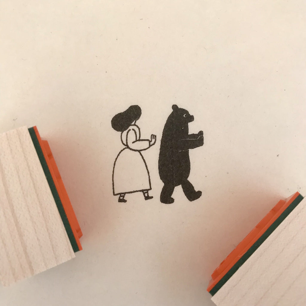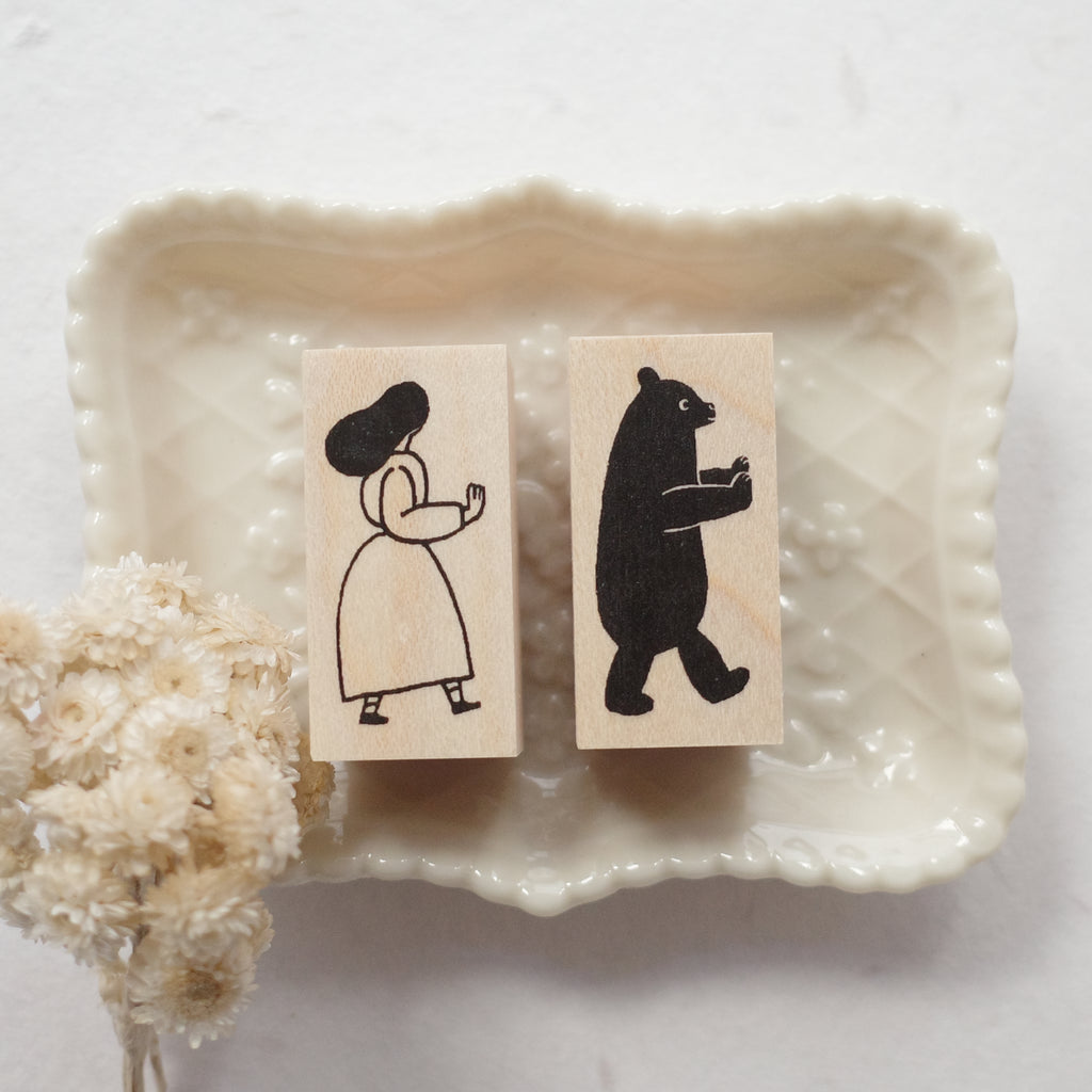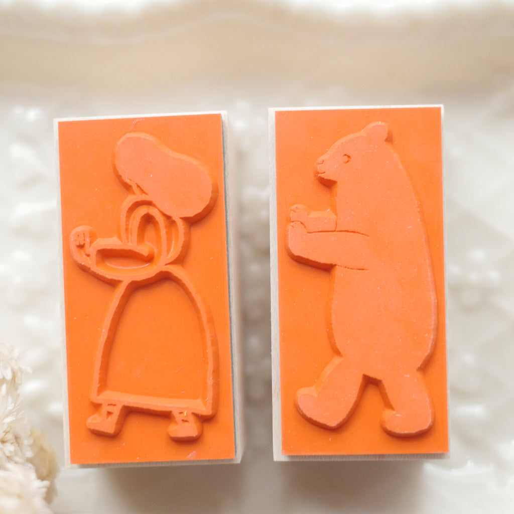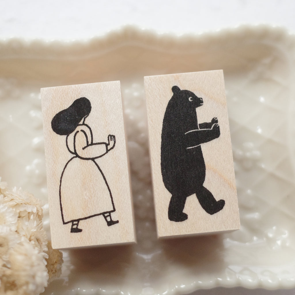 Necktie Rubber Stamp - Forest stamp set "Girl and Bear"