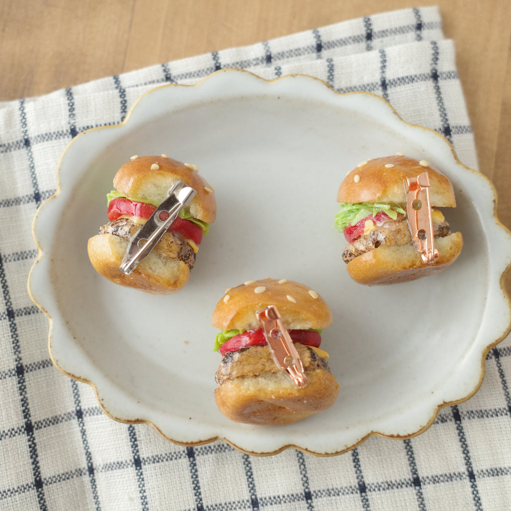 Rye handmade accessories - miniature brooch - Hamburger