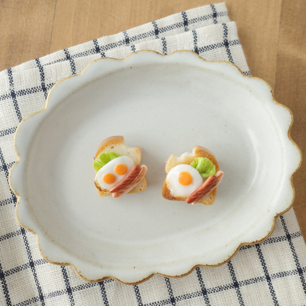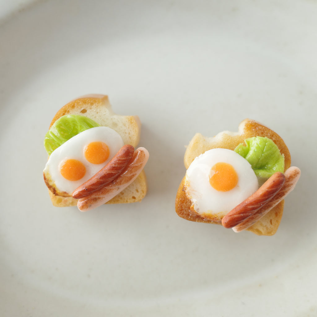 Rye handmade accessories - miniature brooch - Sausage with egg
