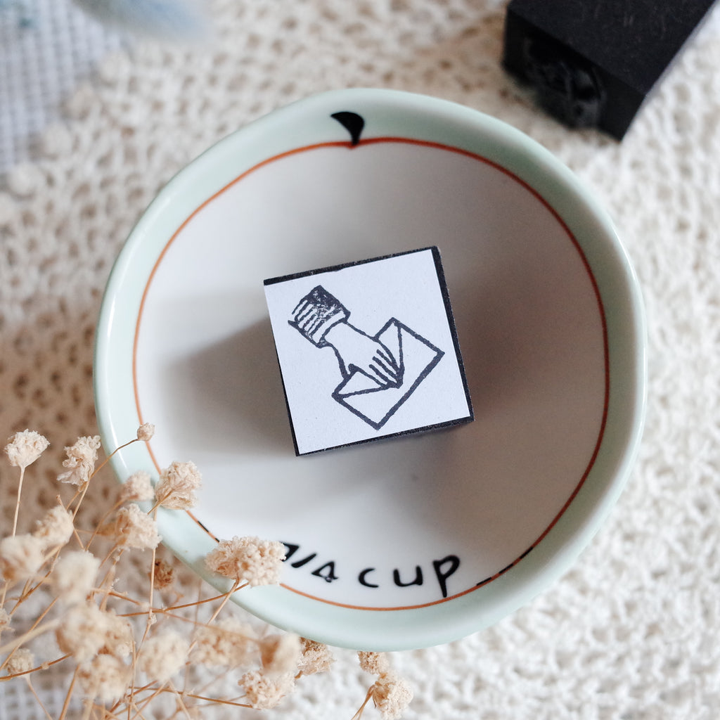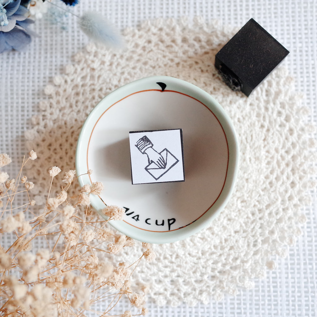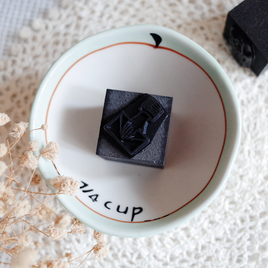 Kocka is an Japanese illustration artist. These original stamps were designed by her. Her stamps are special with using the black handle and black rubber.