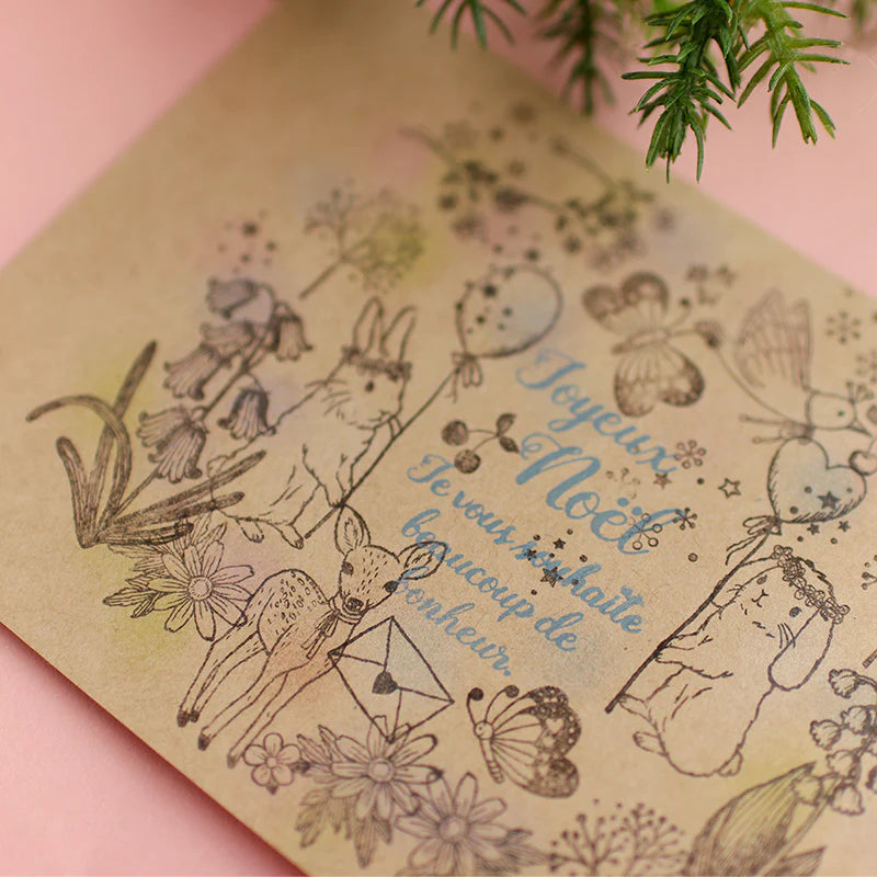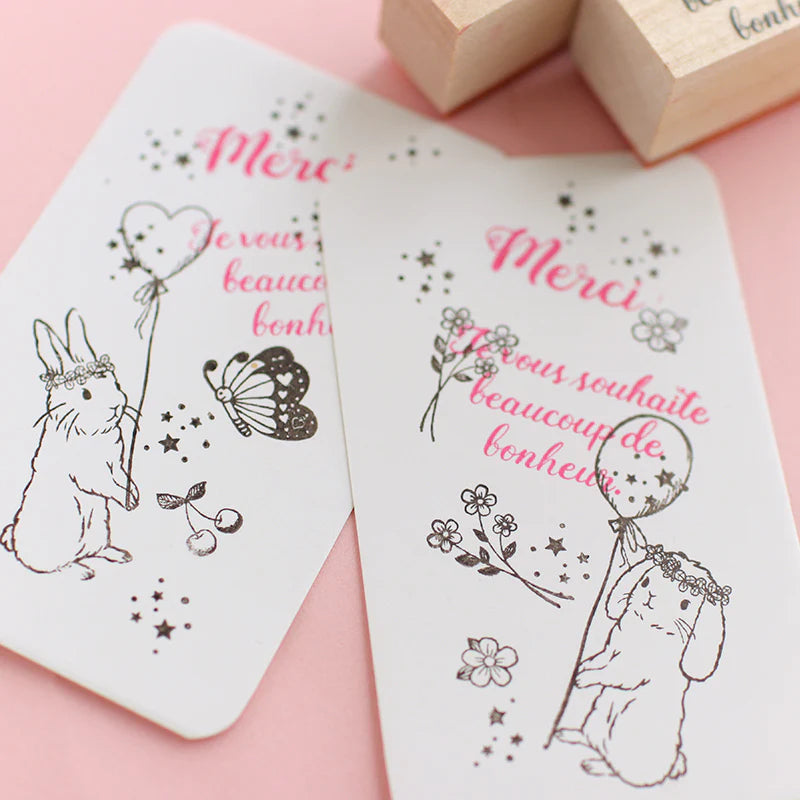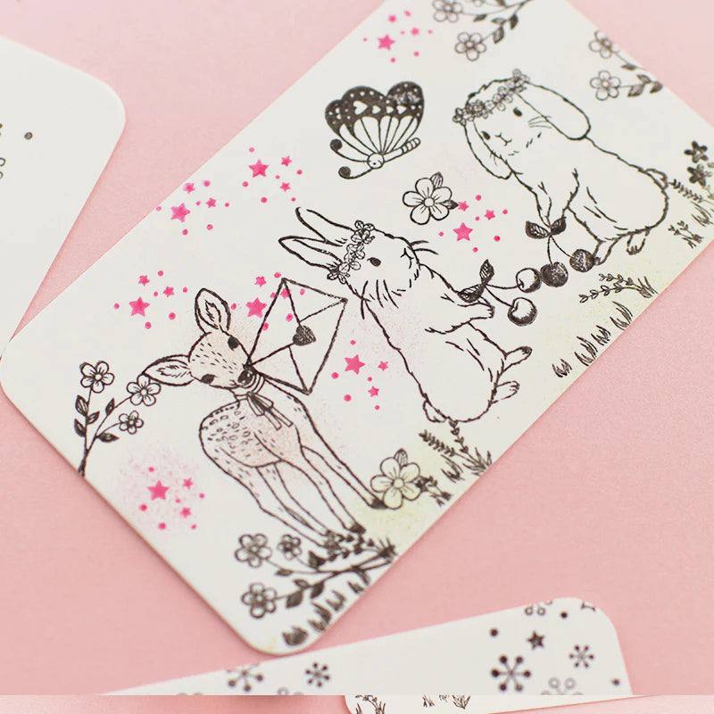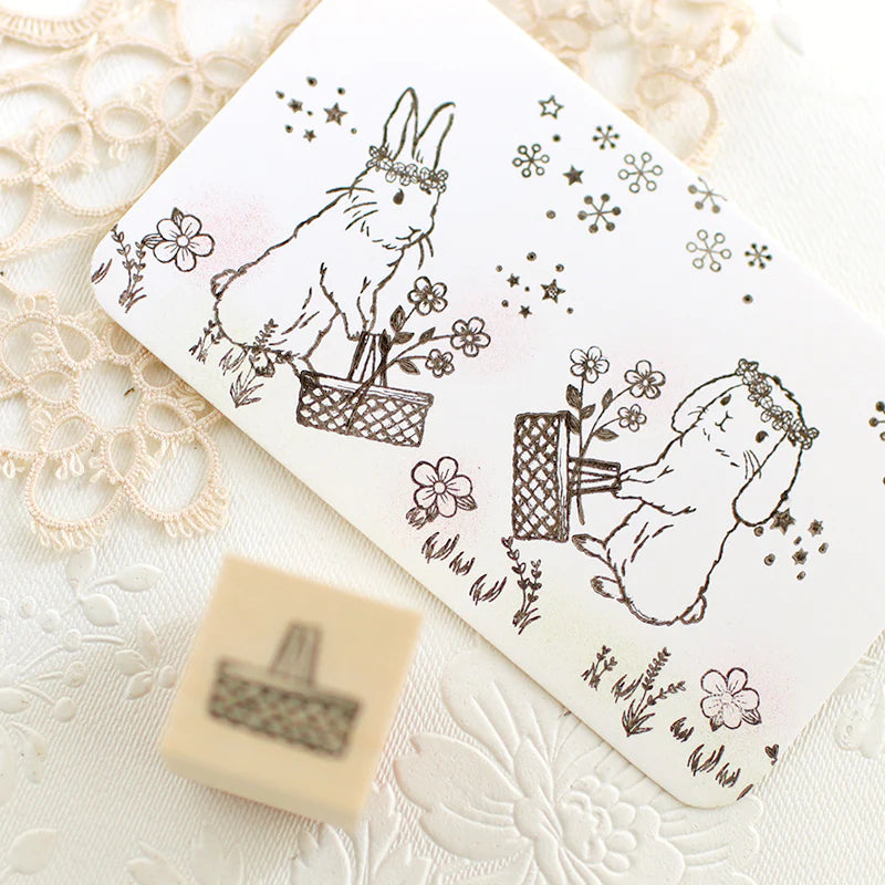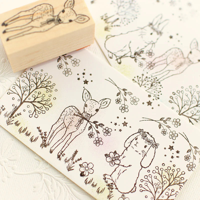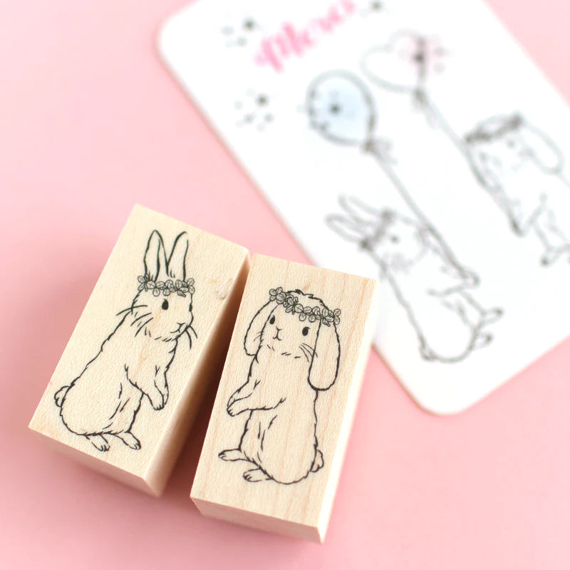 Ecru Forest rubber stamp - Clover flower crown rabbits set