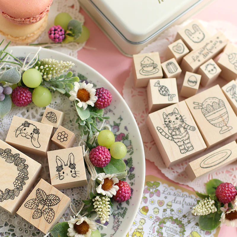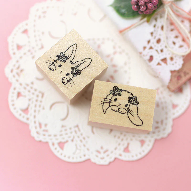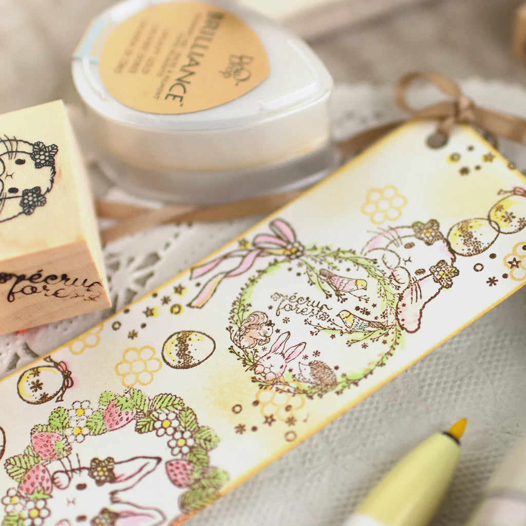 Ecru Forest rubber stamp - La saison des fraises Series - Rabbits with flower