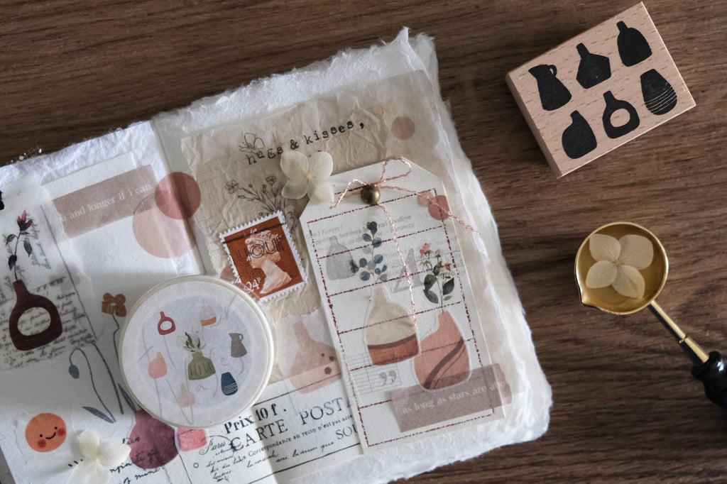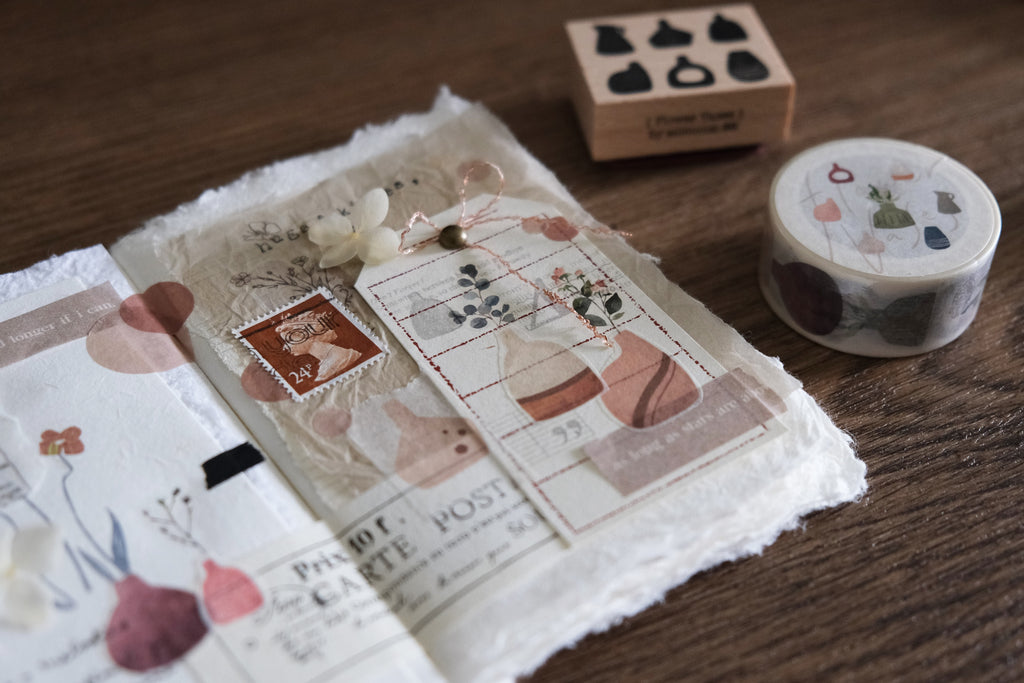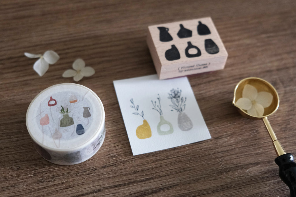Eileen Tai rubber stamp and washi tape - Flower Vases