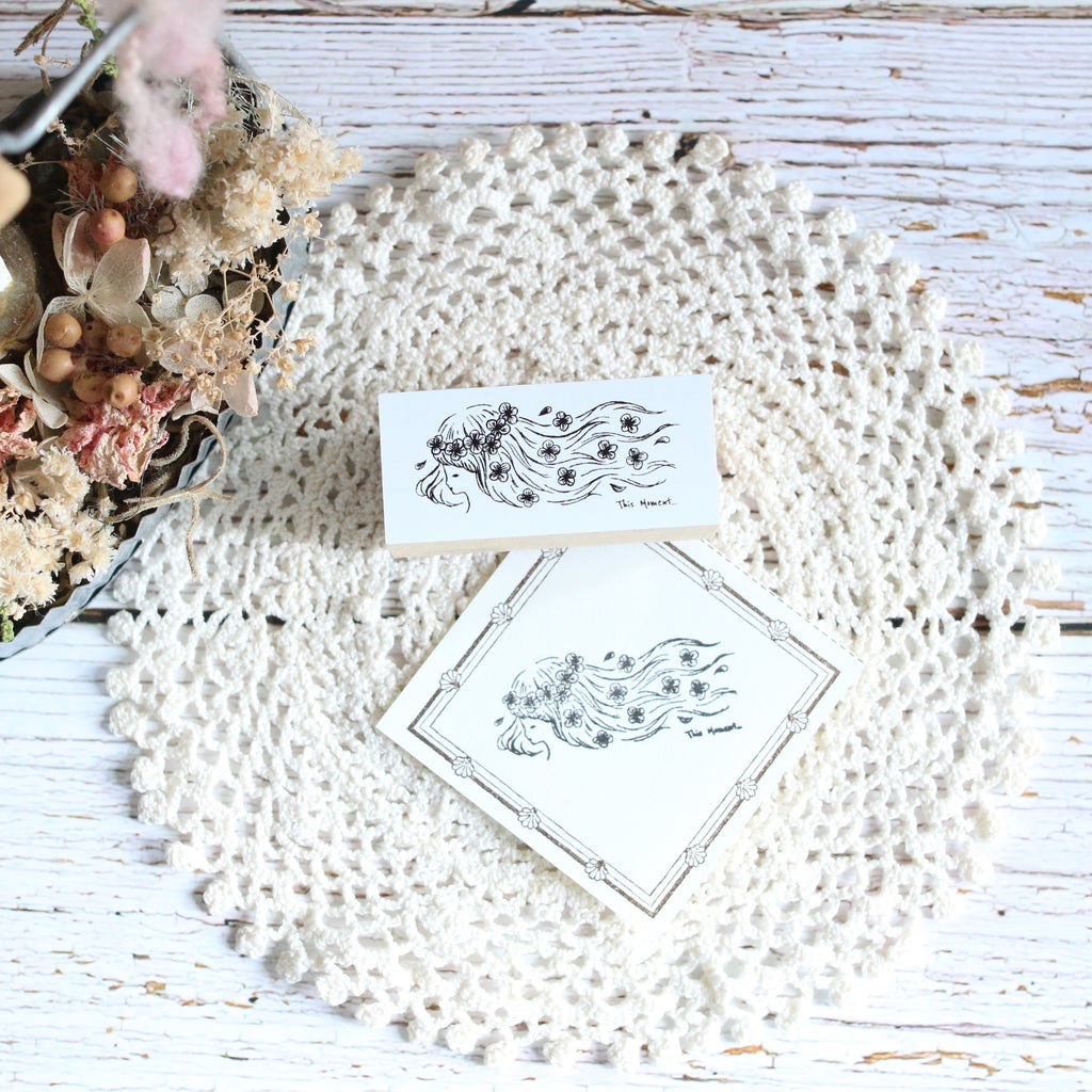 This beautiful stamp is a collaboration between a Japanese copperplate engraving artist, Haruna Deguchi and niconeco zakkaya.