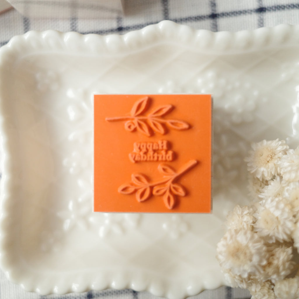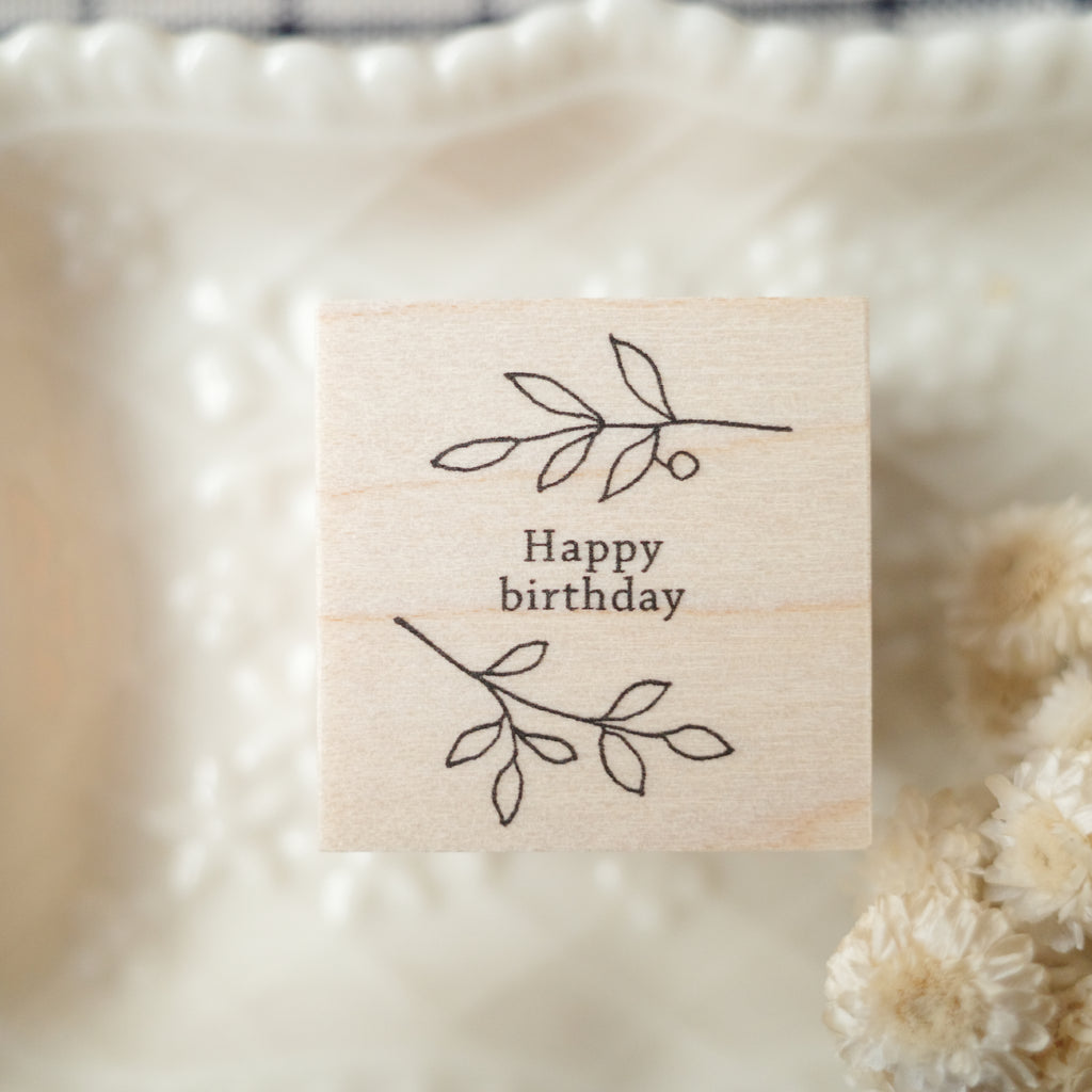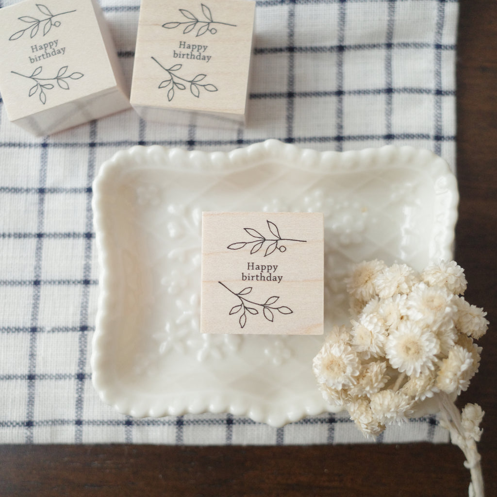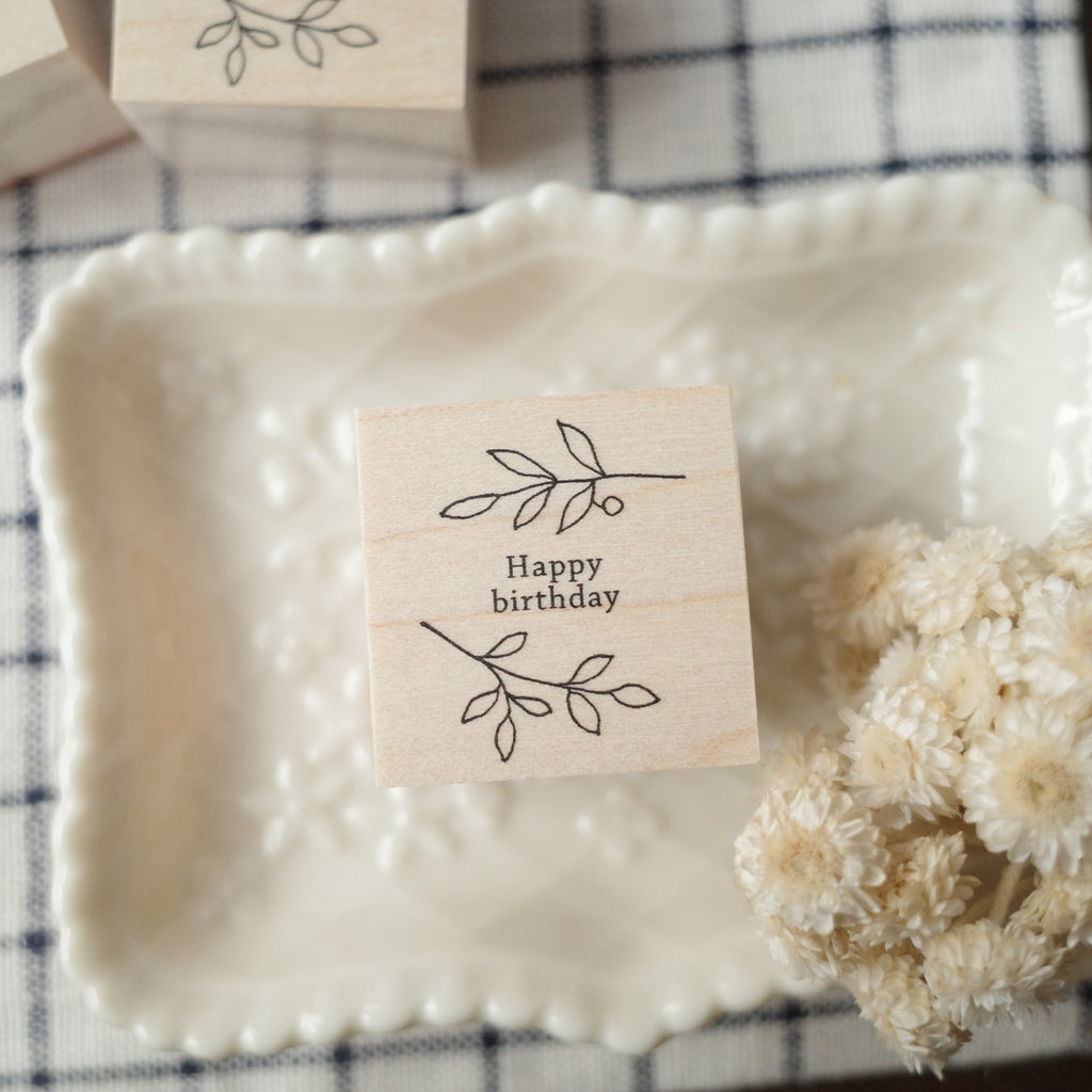 Hutte Paper Works Stamp - Leaf/Happy birthday