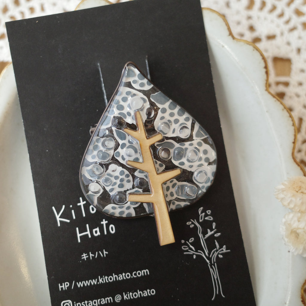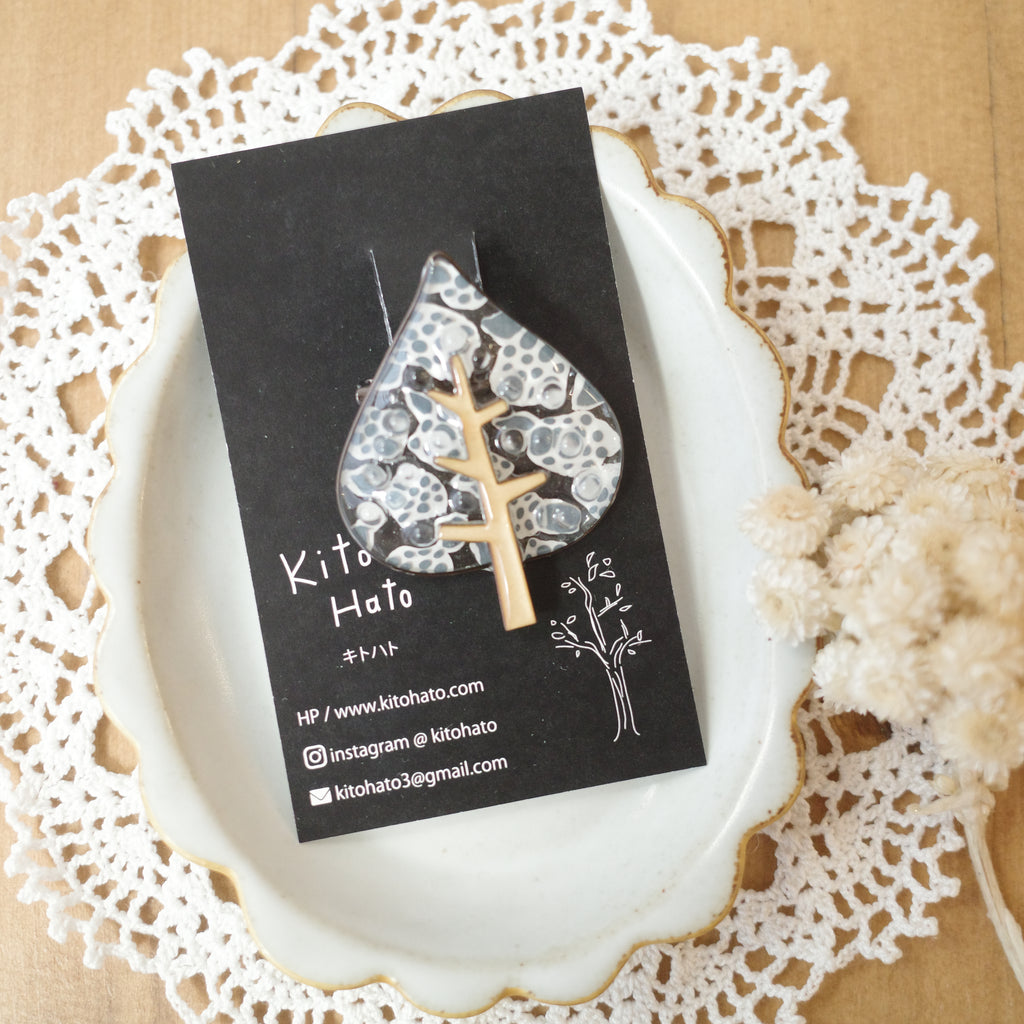 Kito Hato Handmade Brooch - Tree (Little Flower Blue Grey)