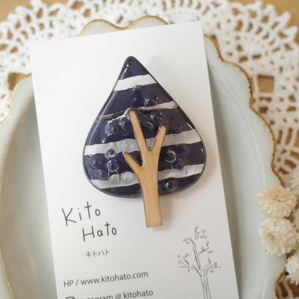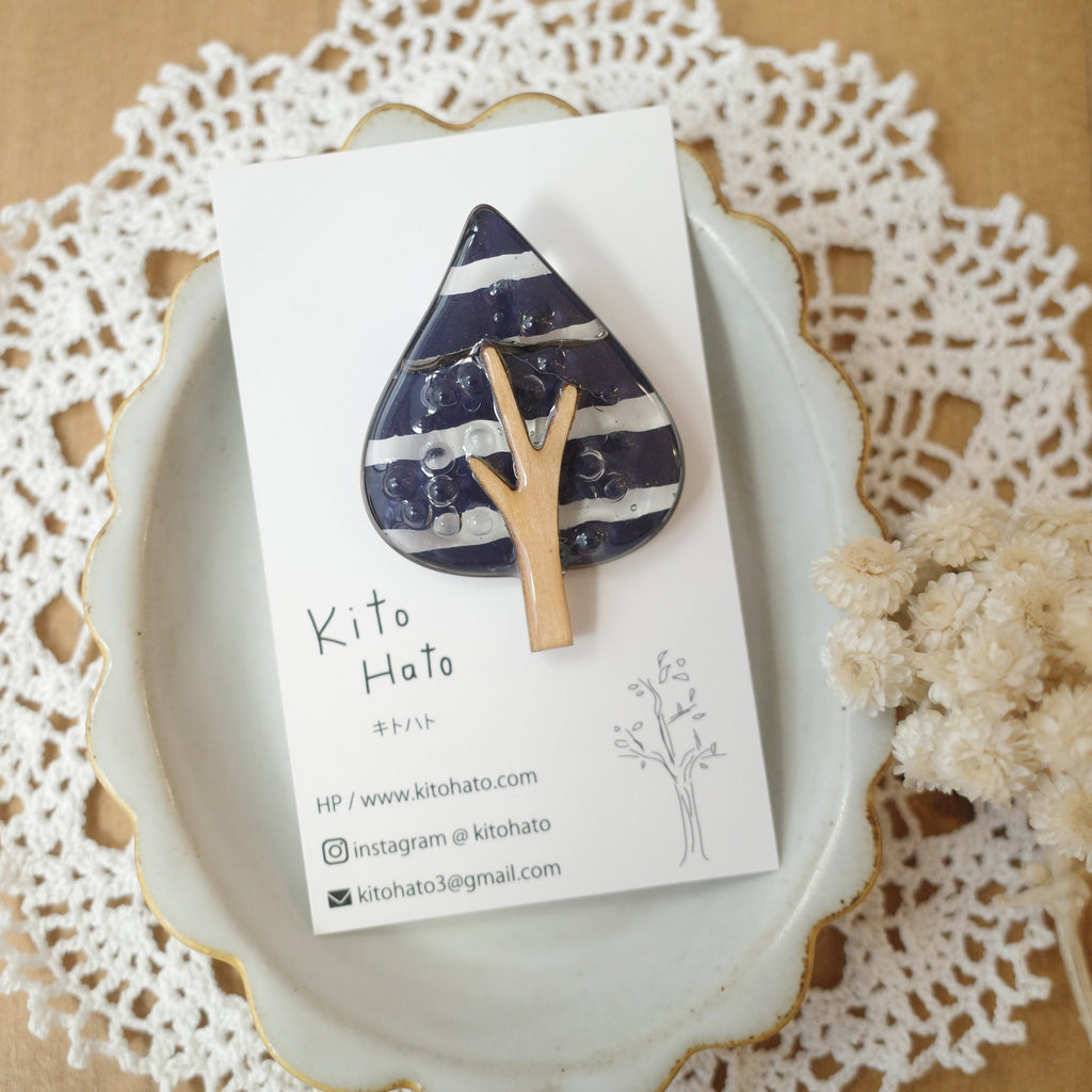 Kito Hato Handmade Brooch - Tree (Navy/Blue)