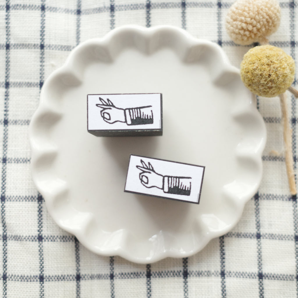Kocka is an Japanese illustration artist. These original stamps were designed by her. Her stamps are special with using the black handle and black rubber.