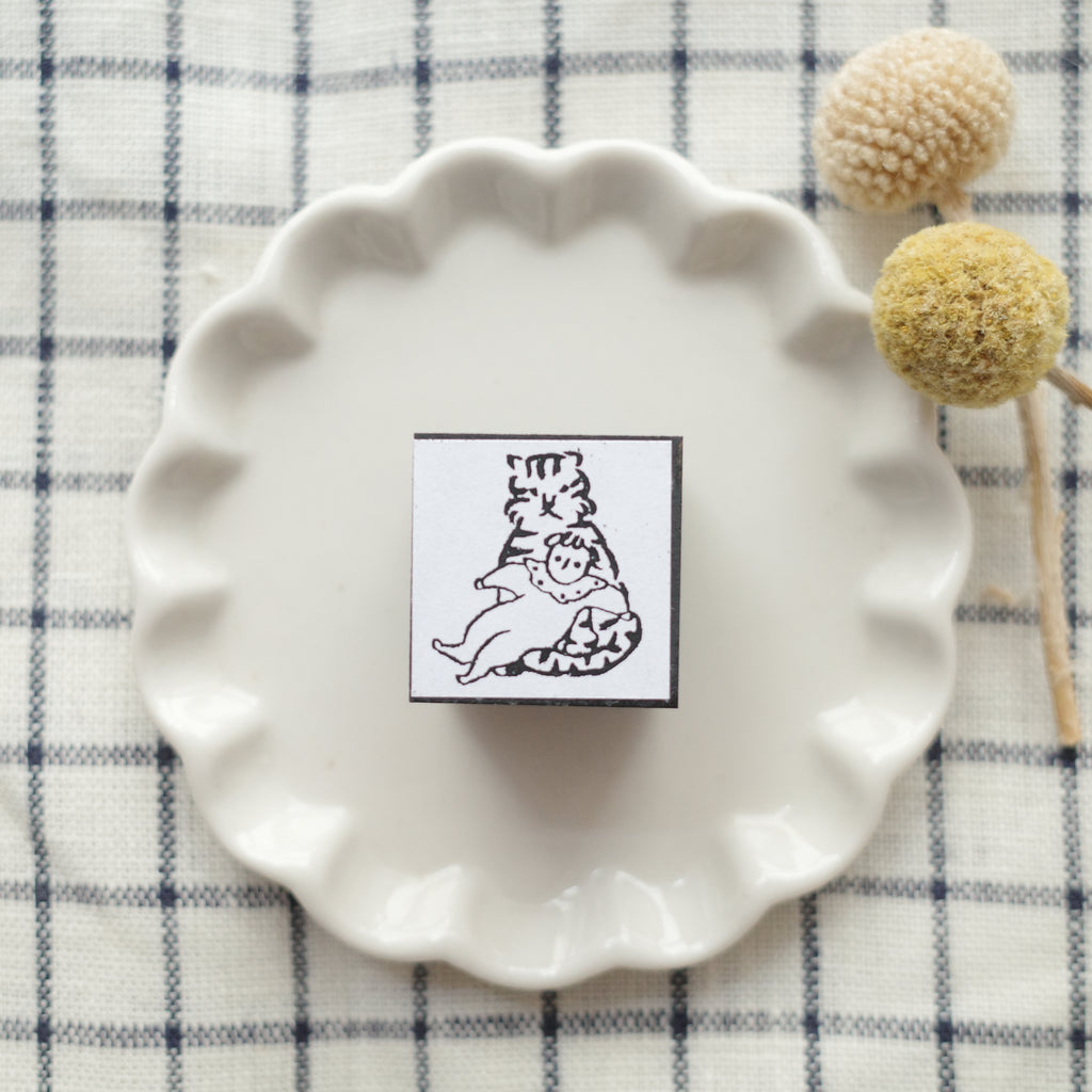 Kocka is an Japanese illustration artist. These original stamps were designed by her. Her stamps are special with using the black handle and black rubber.