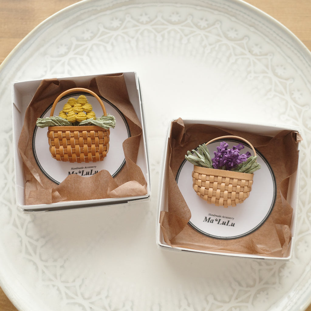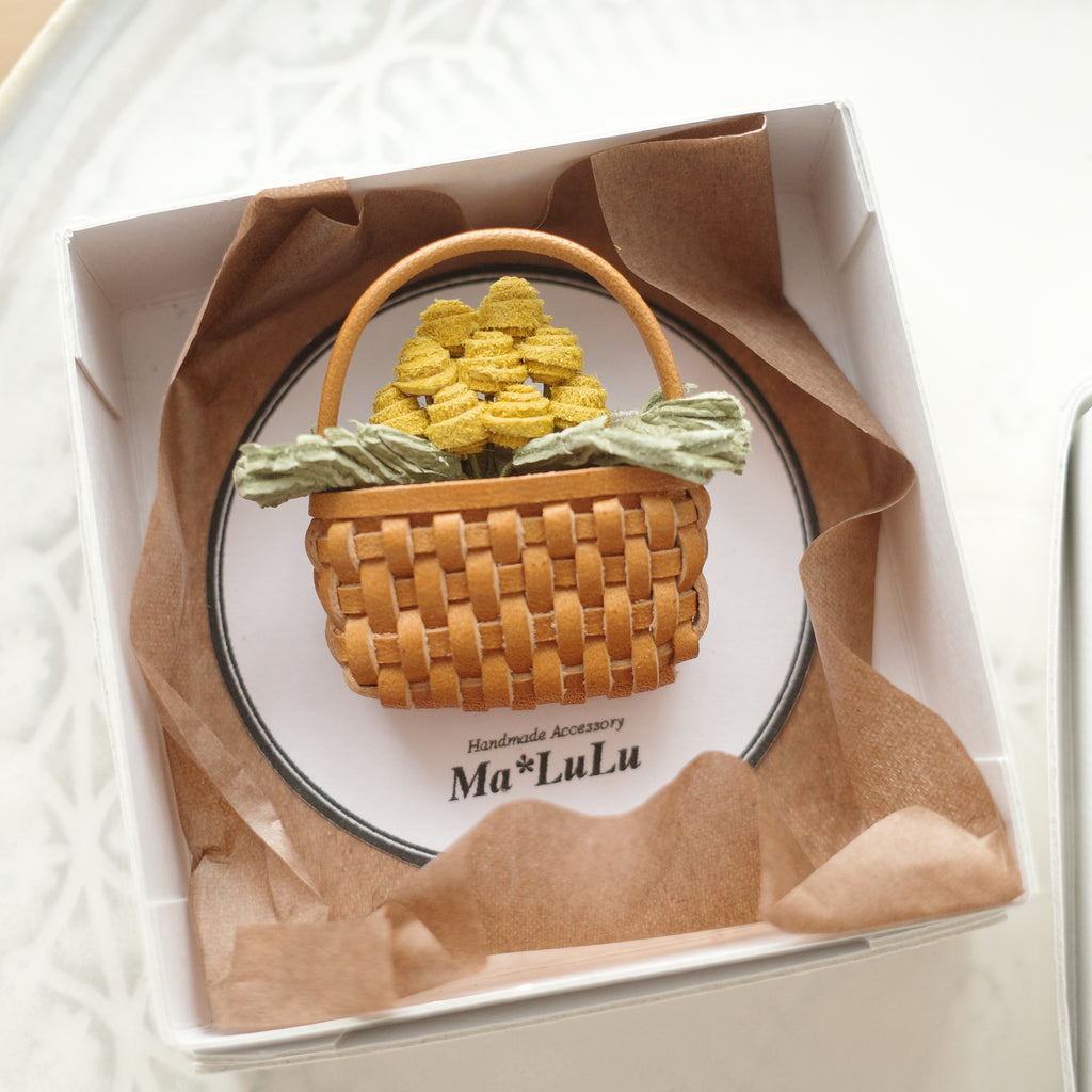 Ma*LuLu Handmade Accessories - Leather Brooch Mini Basket Flower