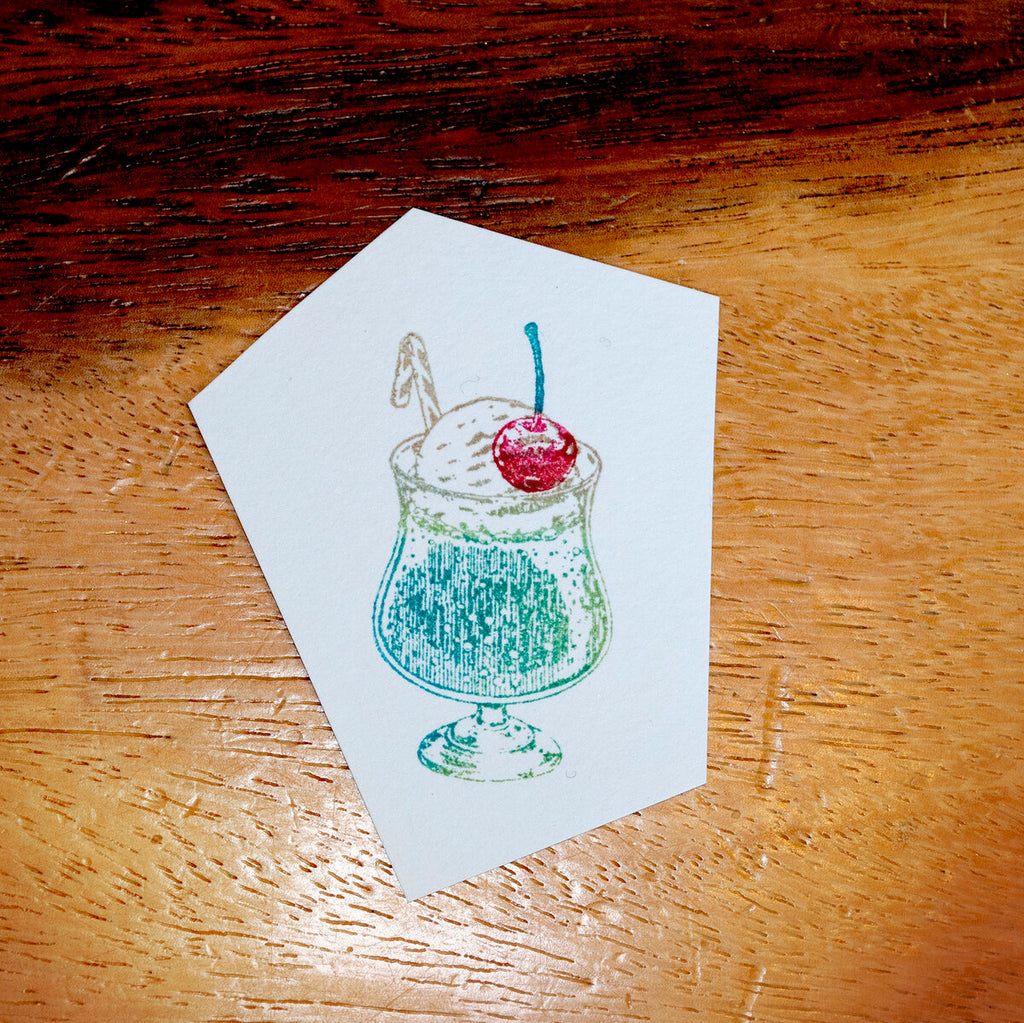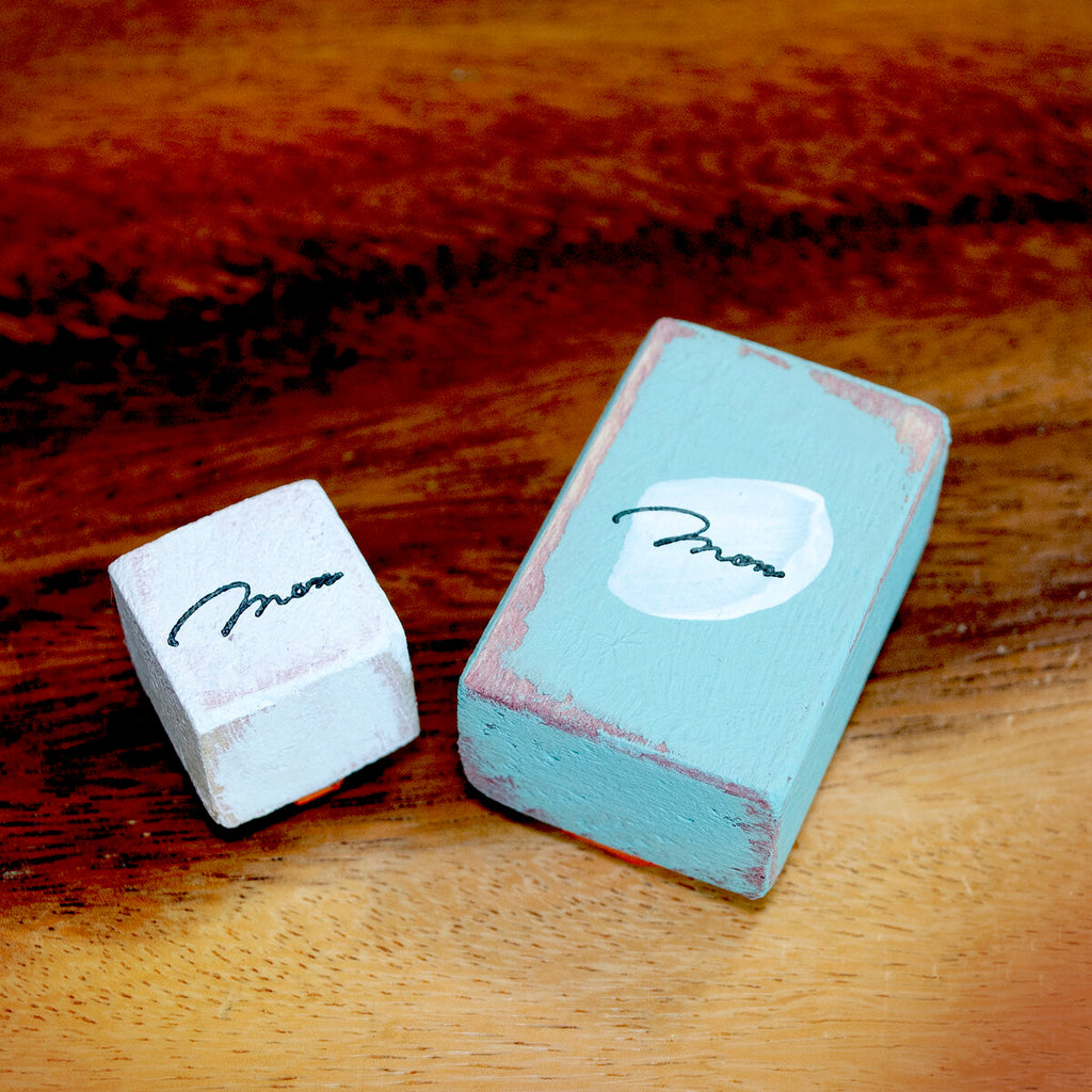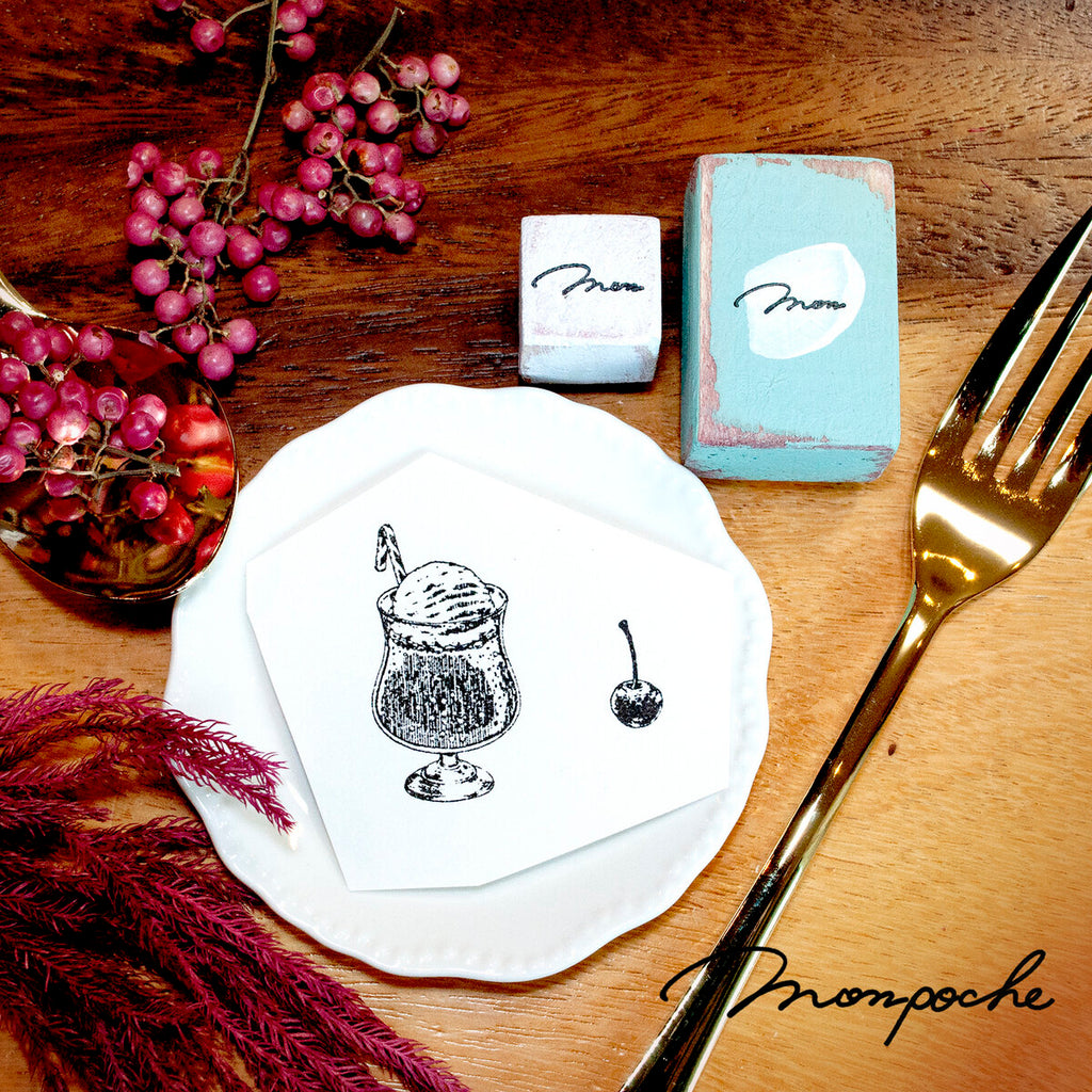Mon poche is a Japanese illustrator. Her stamp handle is made of wood with acrylic painting on it.