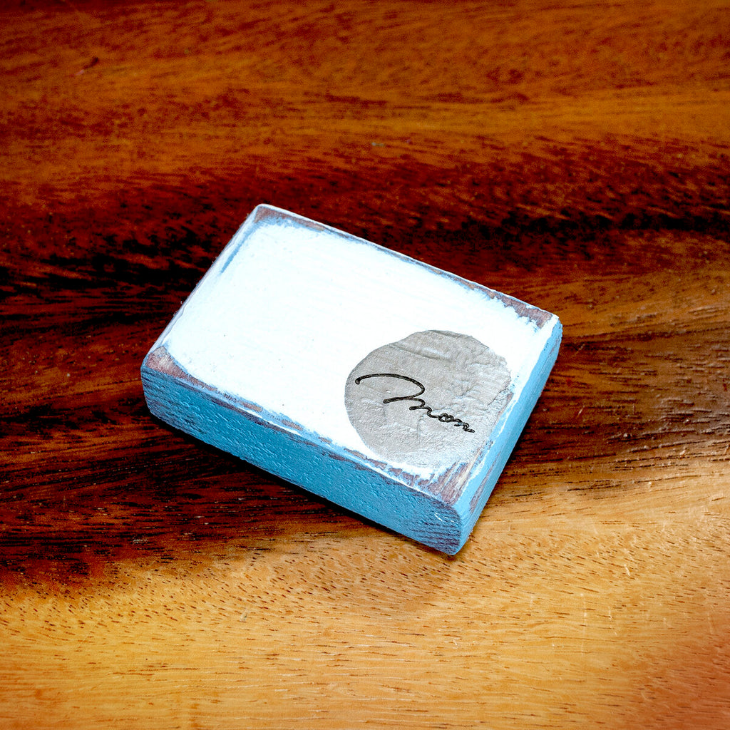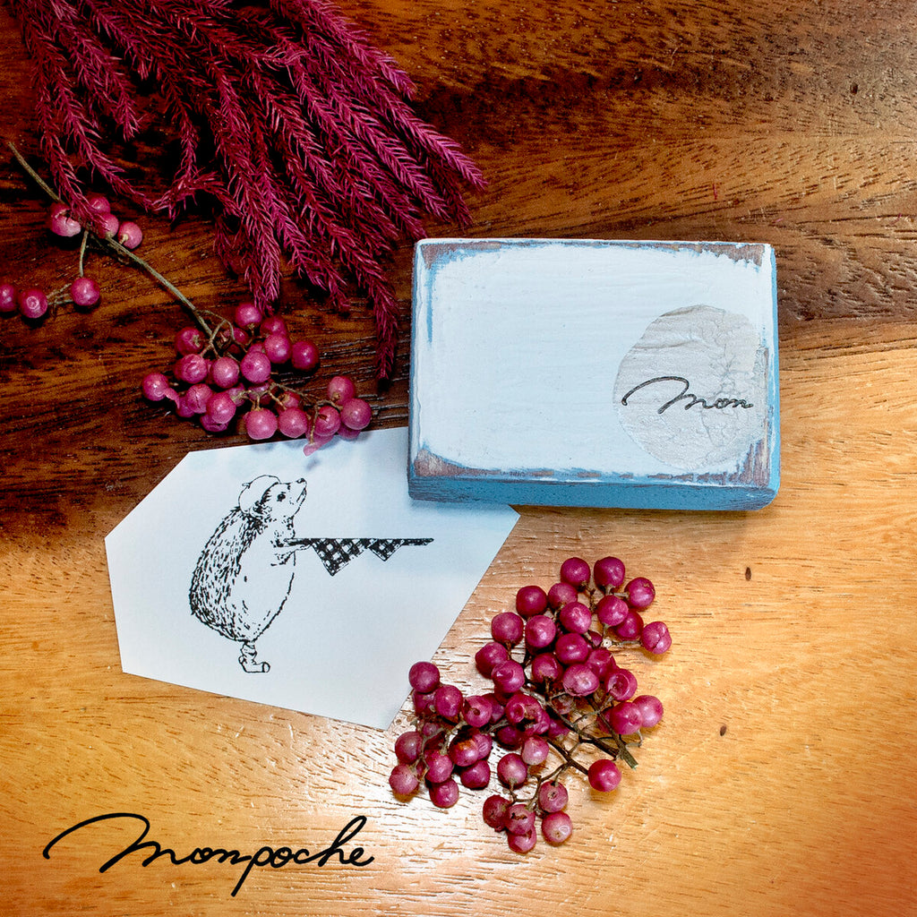 Mon poche is a Japanese illustrator. Her stamp handle is made of wood with acrylic painting on it.