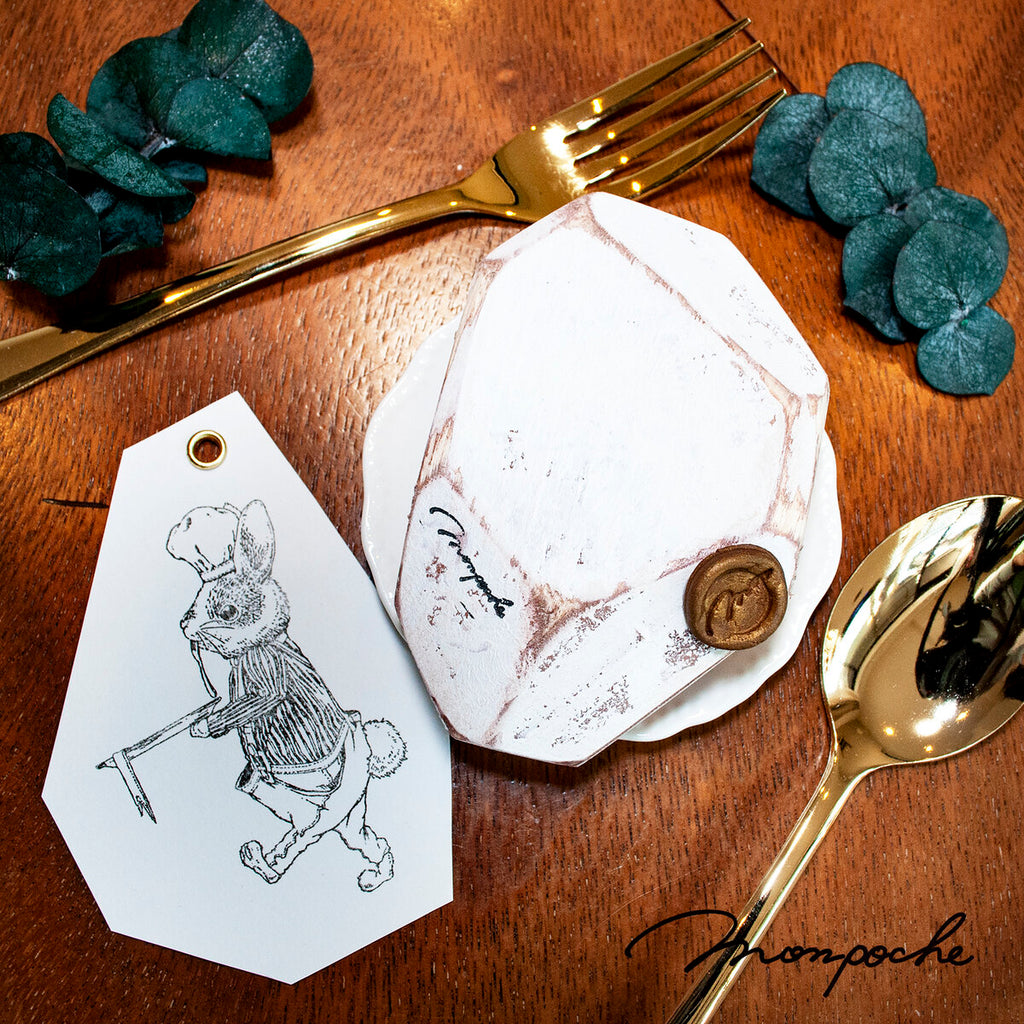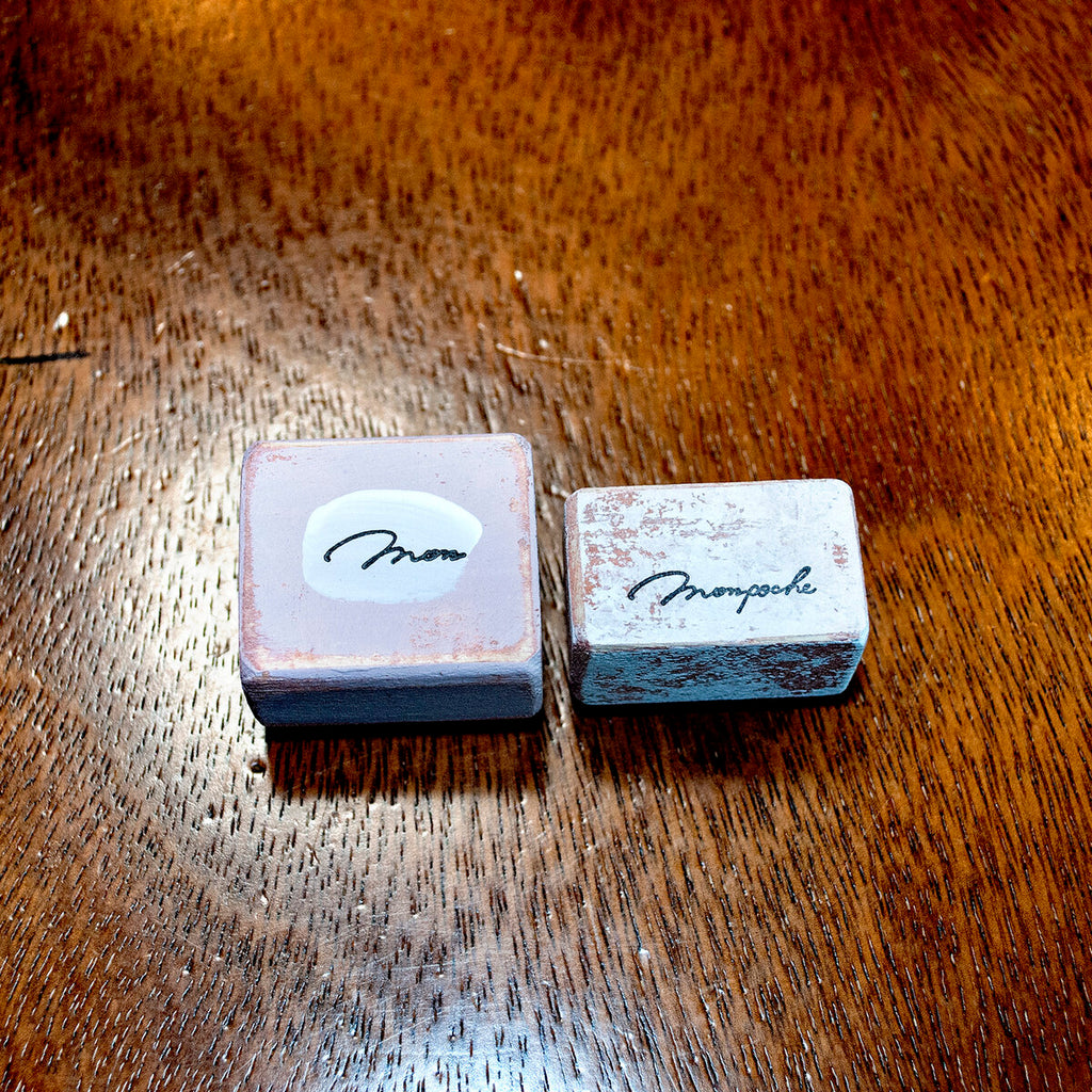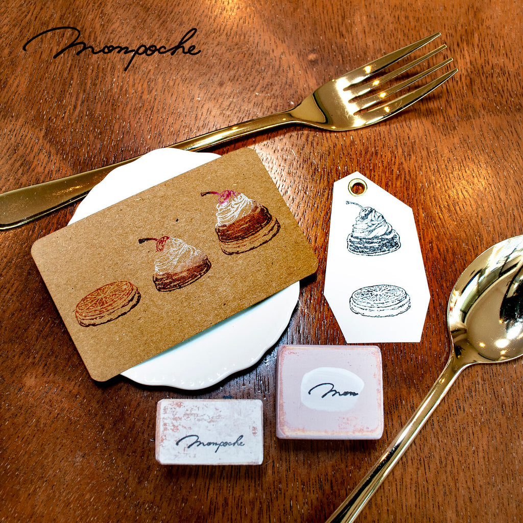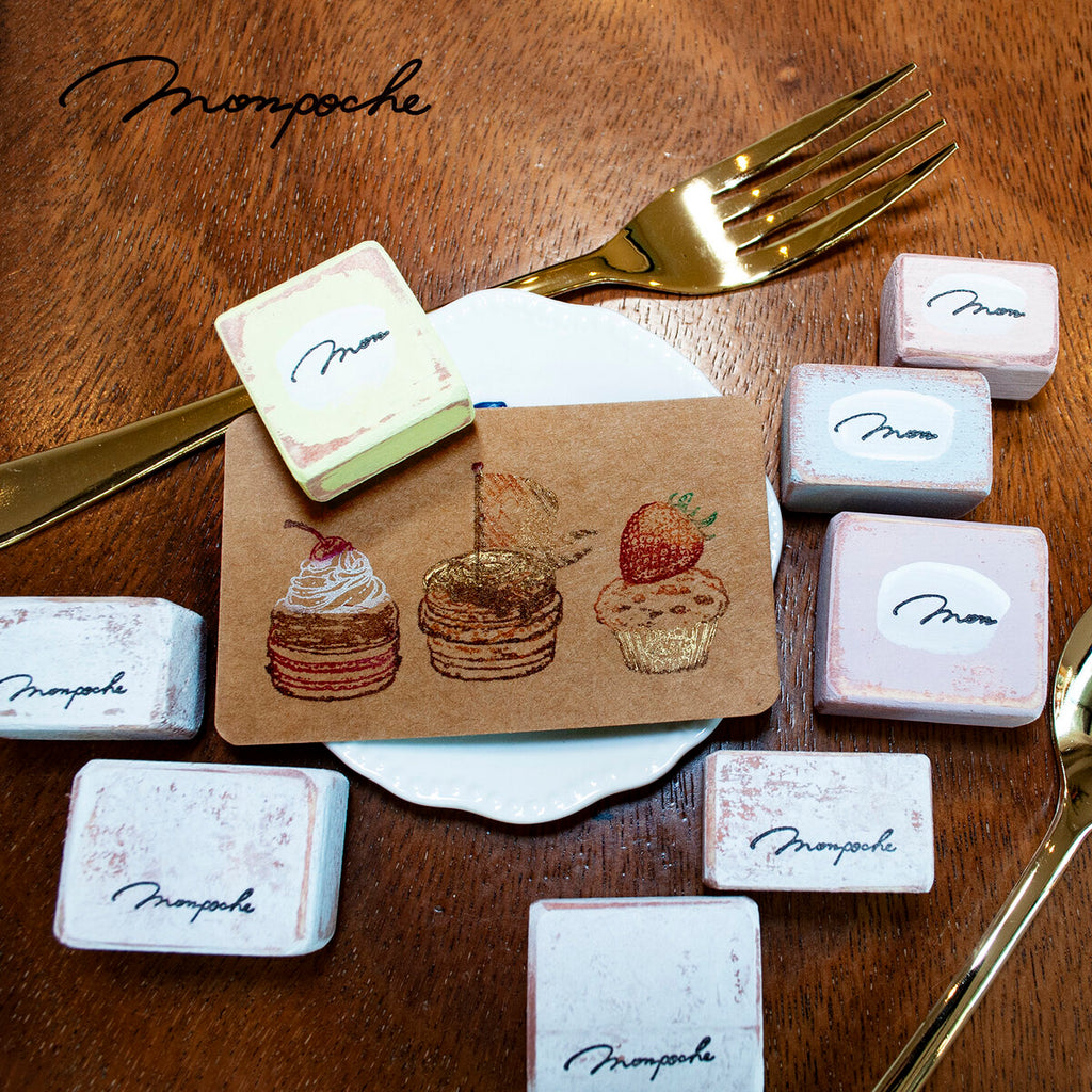 Mon poche is a Japanese illustrator. Her stamp handle is made of wood with acrylic painting on it.