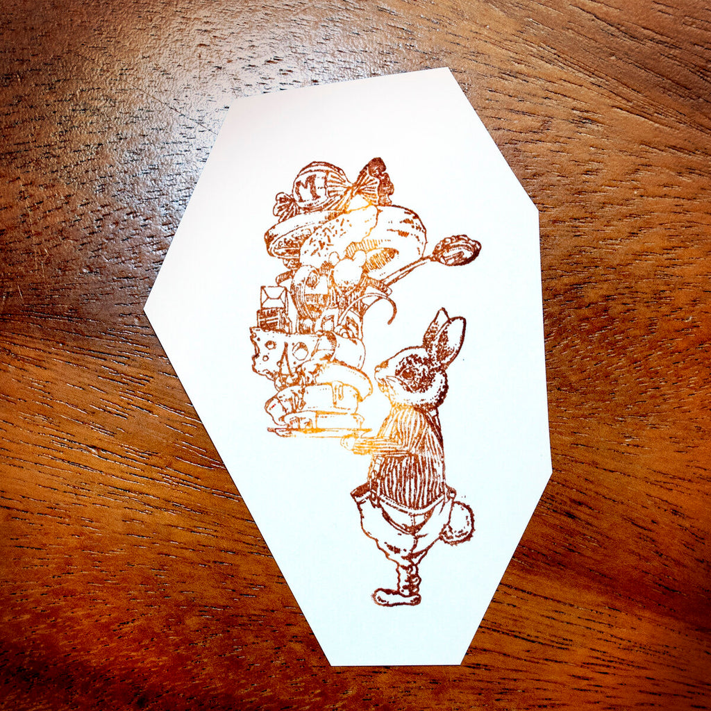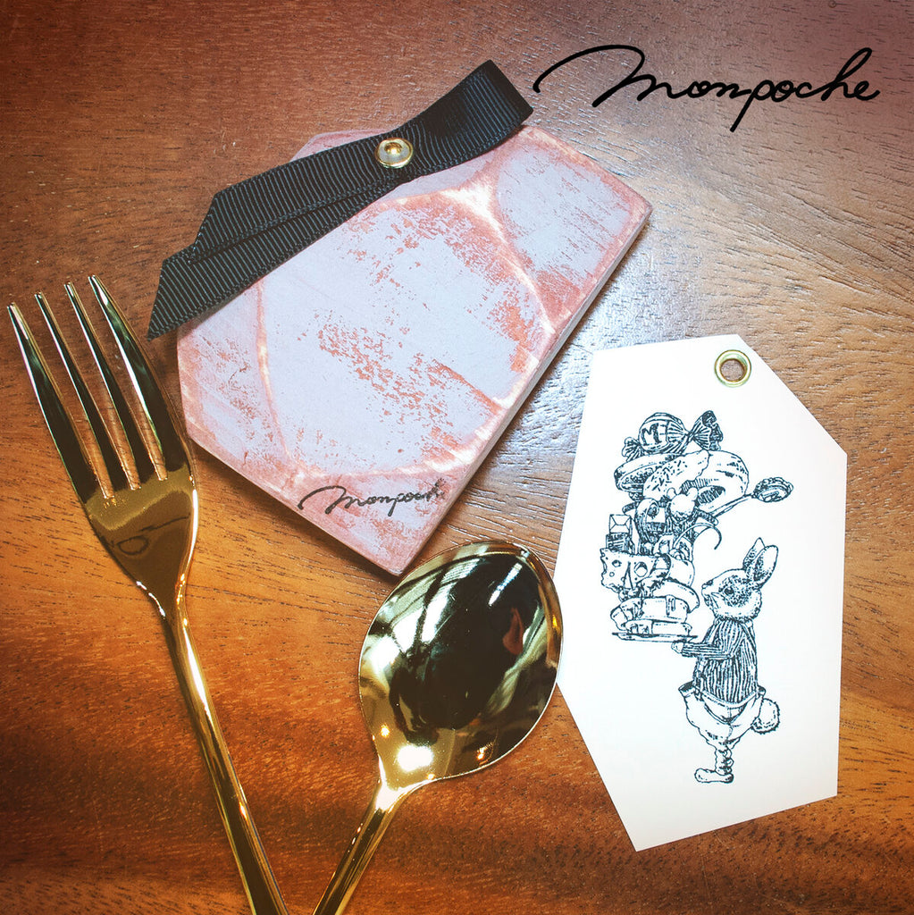 Mon poche is a Japanese illustrator. Her stamp handle is made of wood with acrylic painting on it.