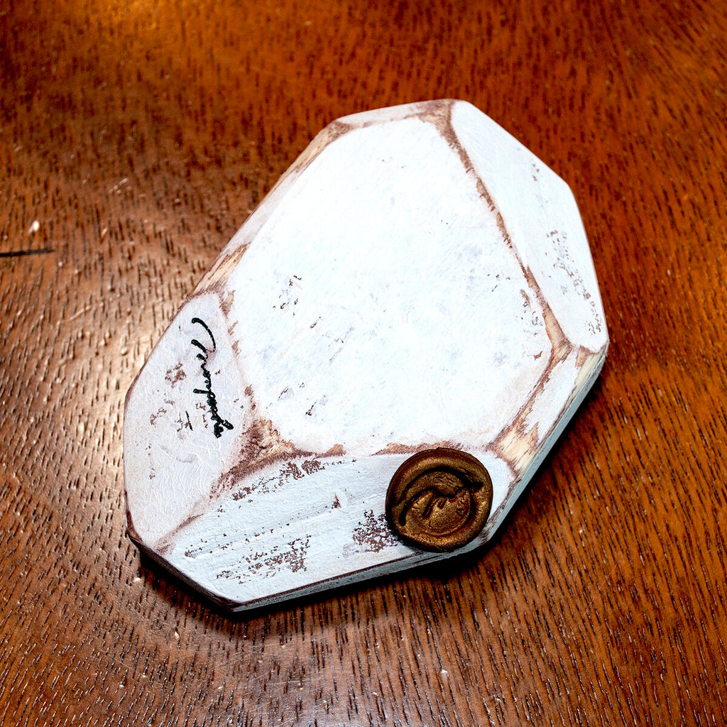 Mon poche is a Japanese illustrator. Her stamp handle is made of wood with acrylic painting on it.