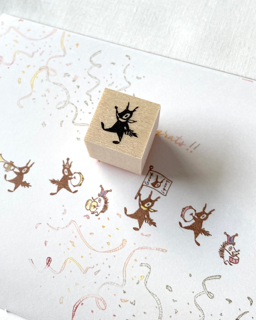 Mori Ringo Rubber Stamp - Raising hand squirrel (left)