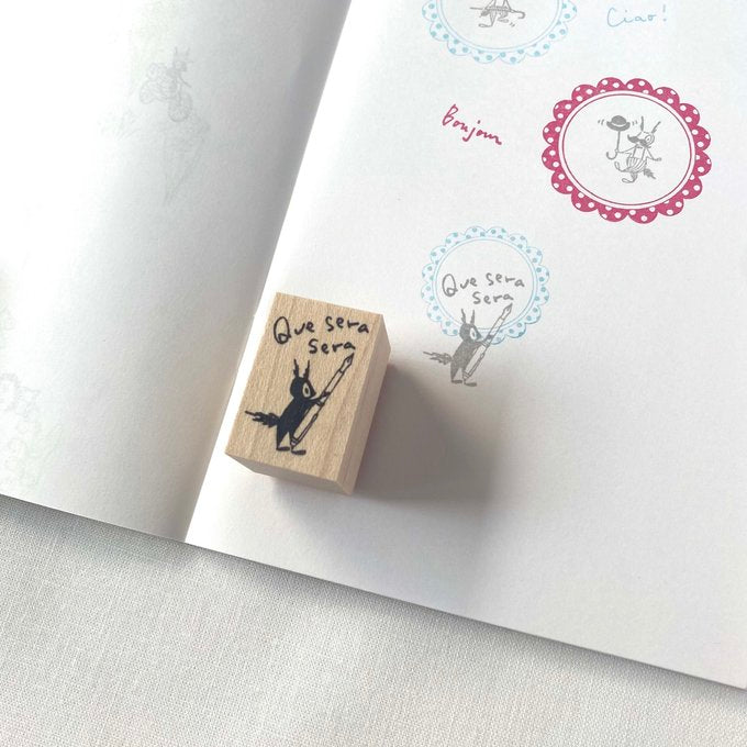 Mori Ringo Rubber Stamp - Squirrel and Que Sera Sera