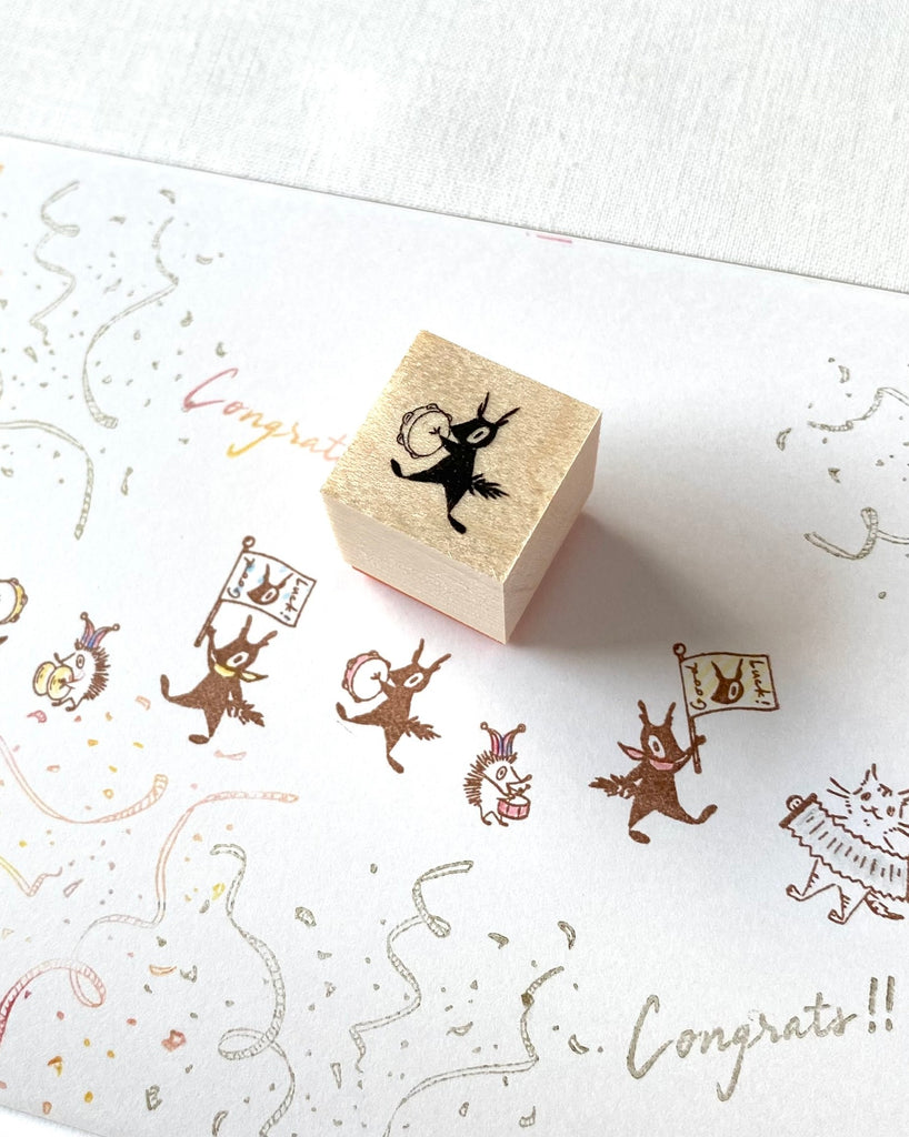 Mori Ringo Rubber Stamp - Tambourine squirrel (left)
