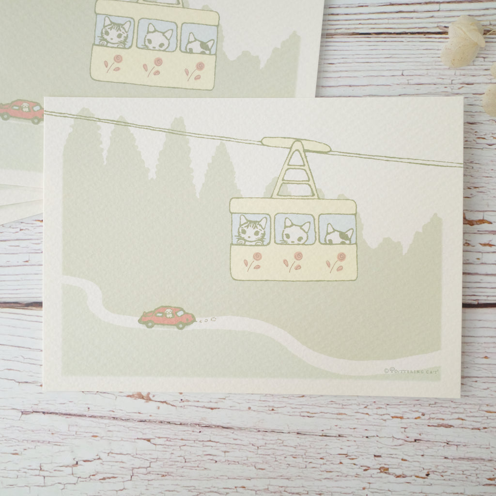 Pottering Cat Postcard - Ropeway