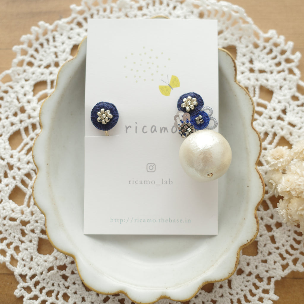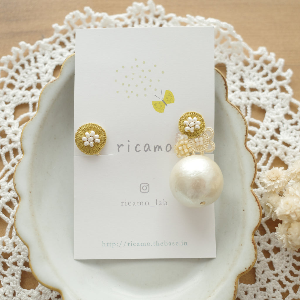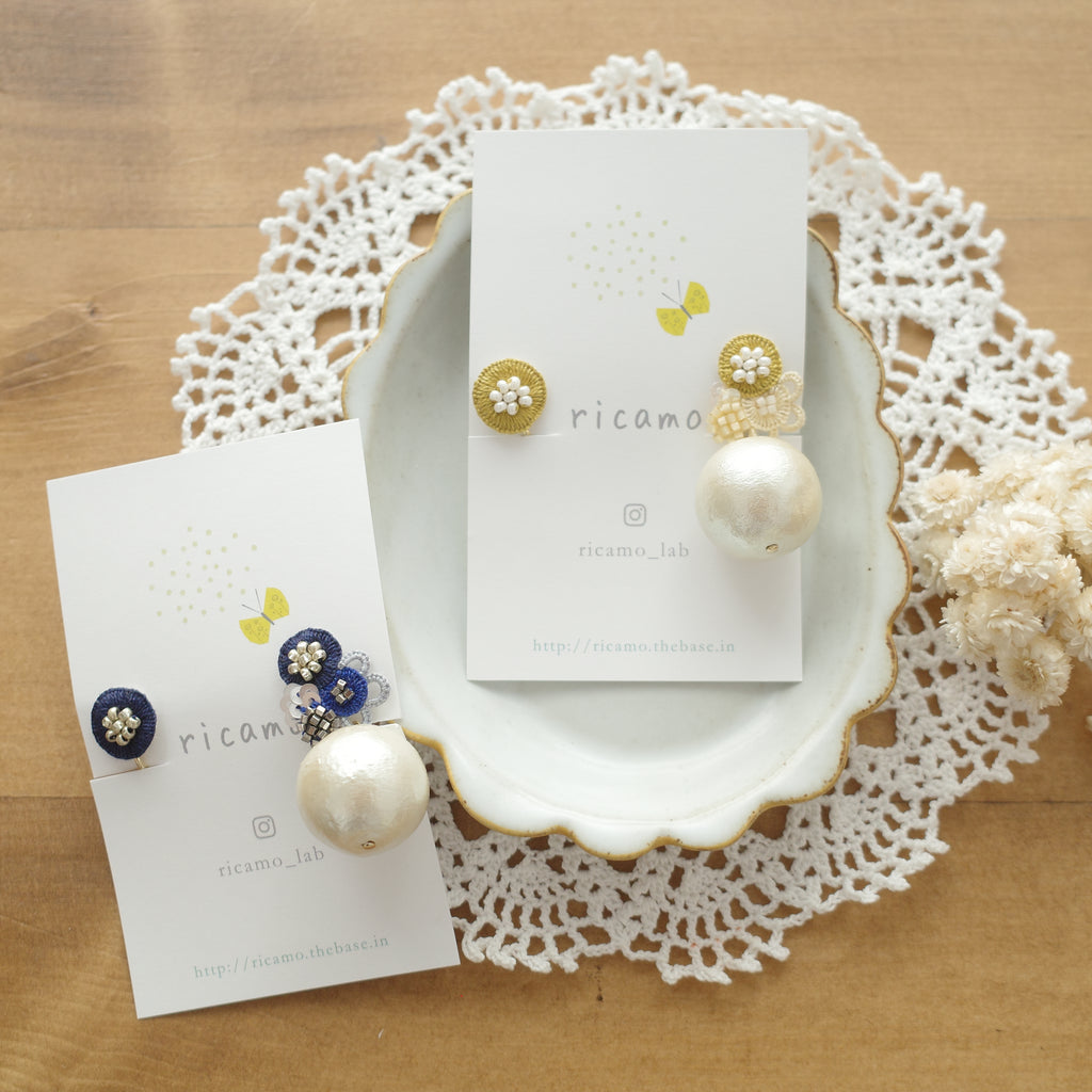 Ricamo Handmade Accessories - Embroidery earrings (large cotton pearl) (Clip)