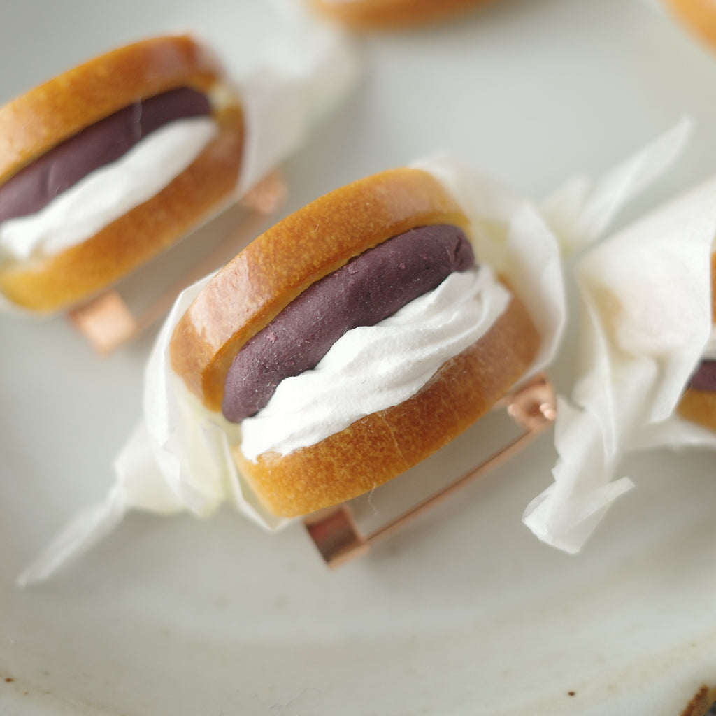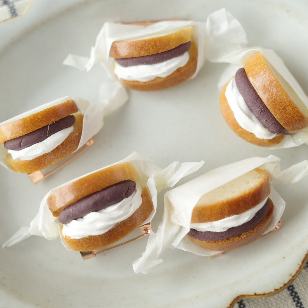Rye handmade accessories - miniature brooch - Red beans cream sandwich