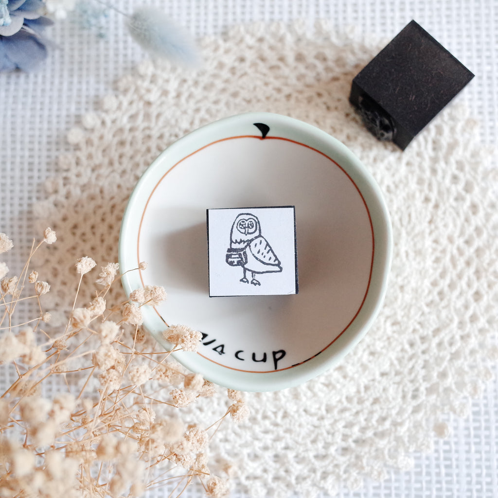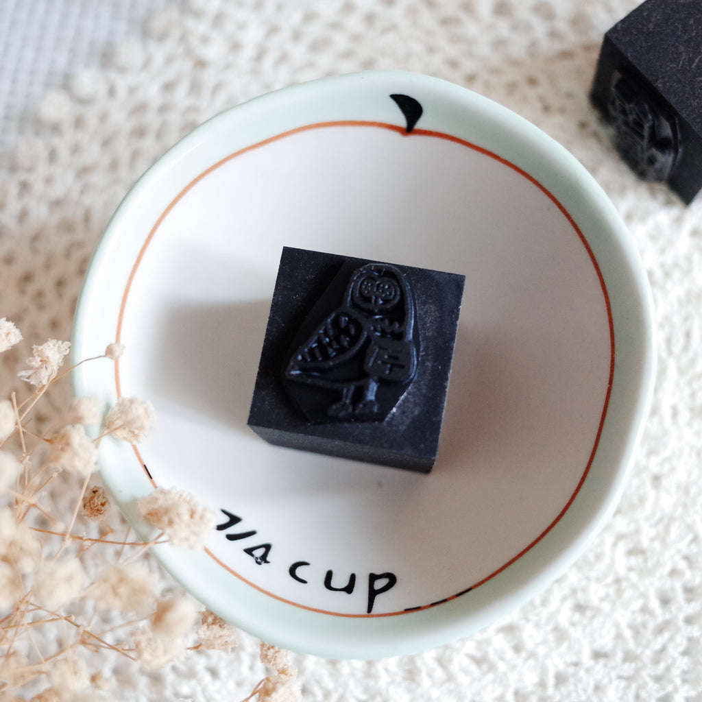 Kocka is an Japanese illustration artist. These original stamps were designed by her. Her stamps are special with using the black handle and black rubber.