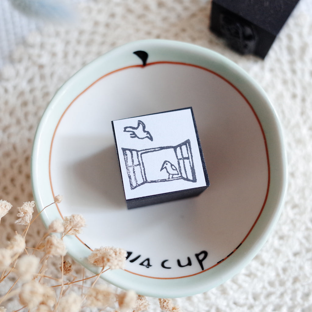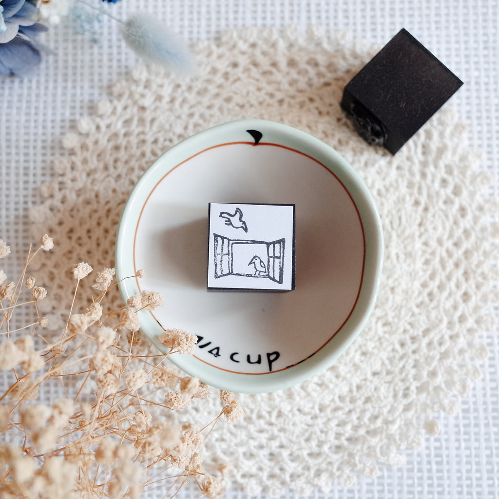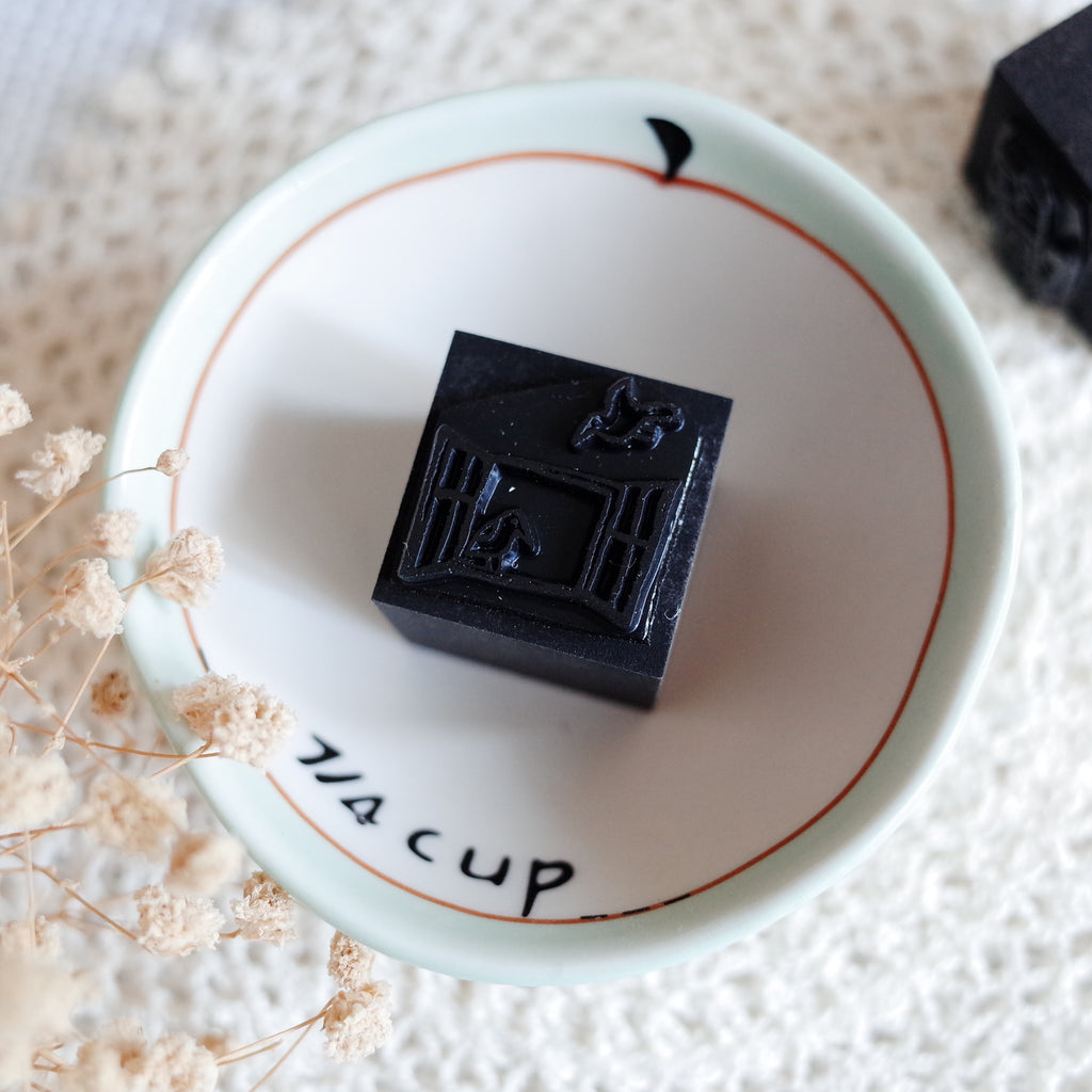 Kocka is an Japanese illustration artist. These original stamps were designed by her. Her stamps are special with using the black handle and black rubber.