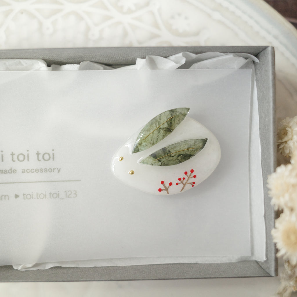 toi toi toi Handmade Accessories - Brooch KASANARI Snow Rabbit