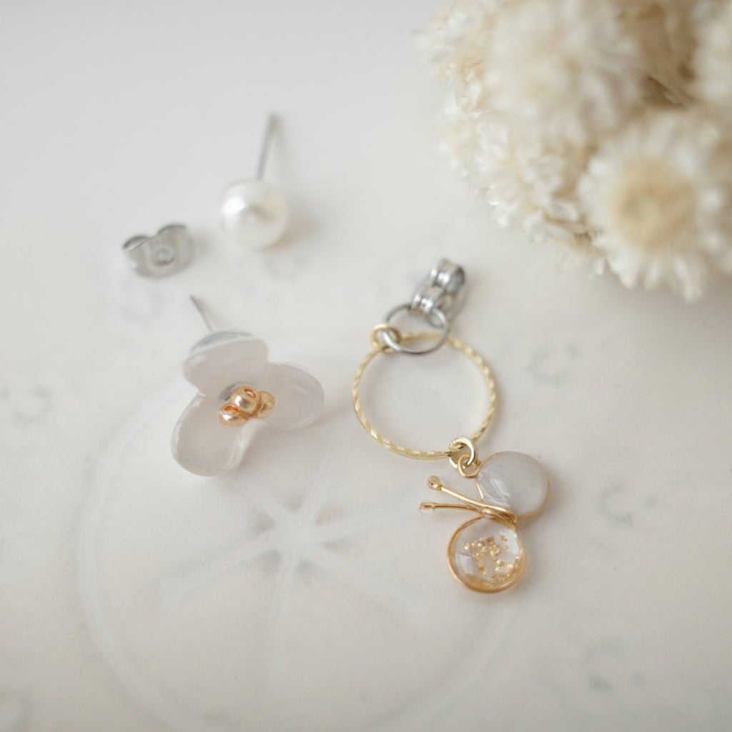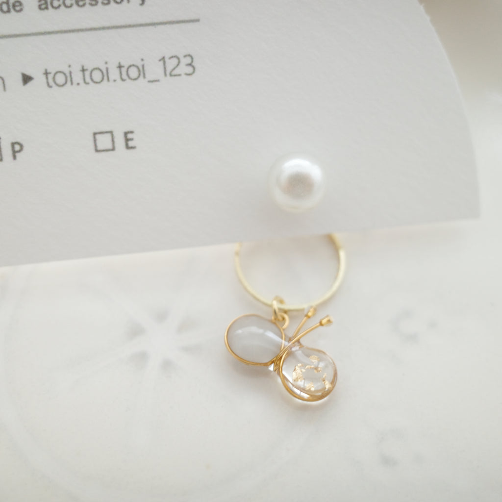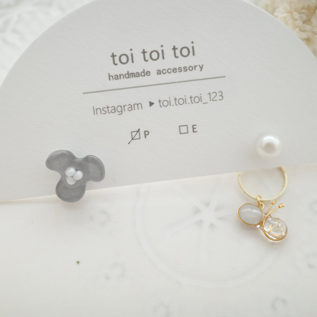 toi toi toi Handmade Accessories - Flower & Butterfly Earrings (Grey) (Pre-order)