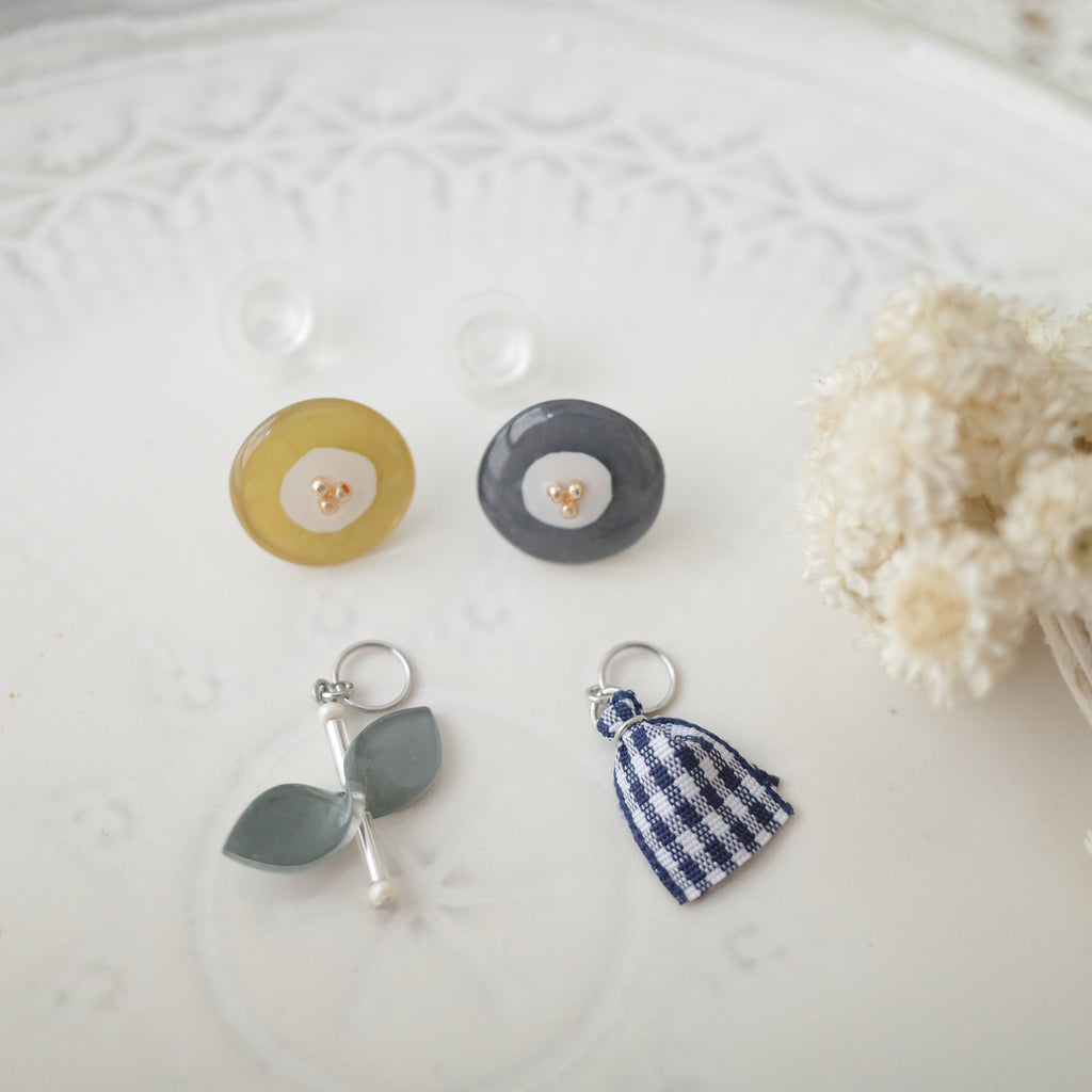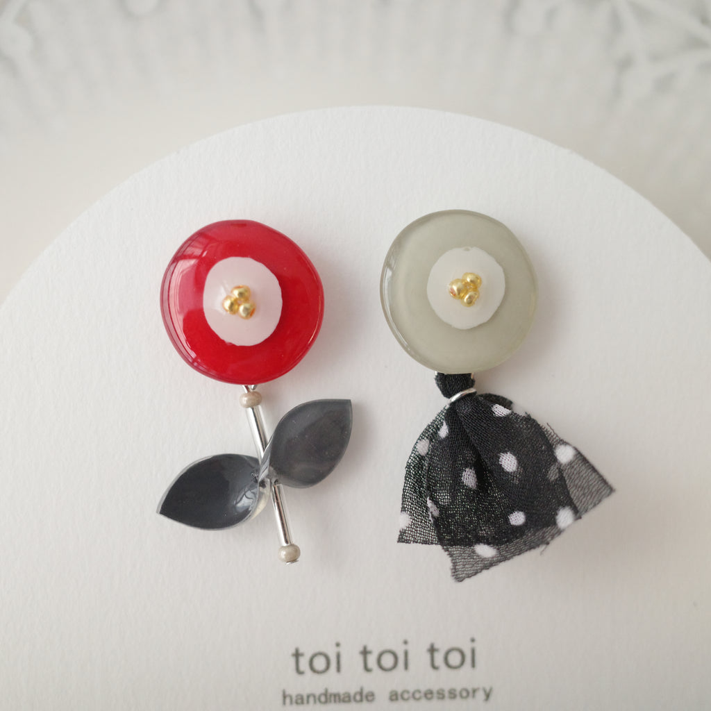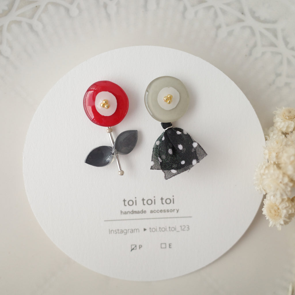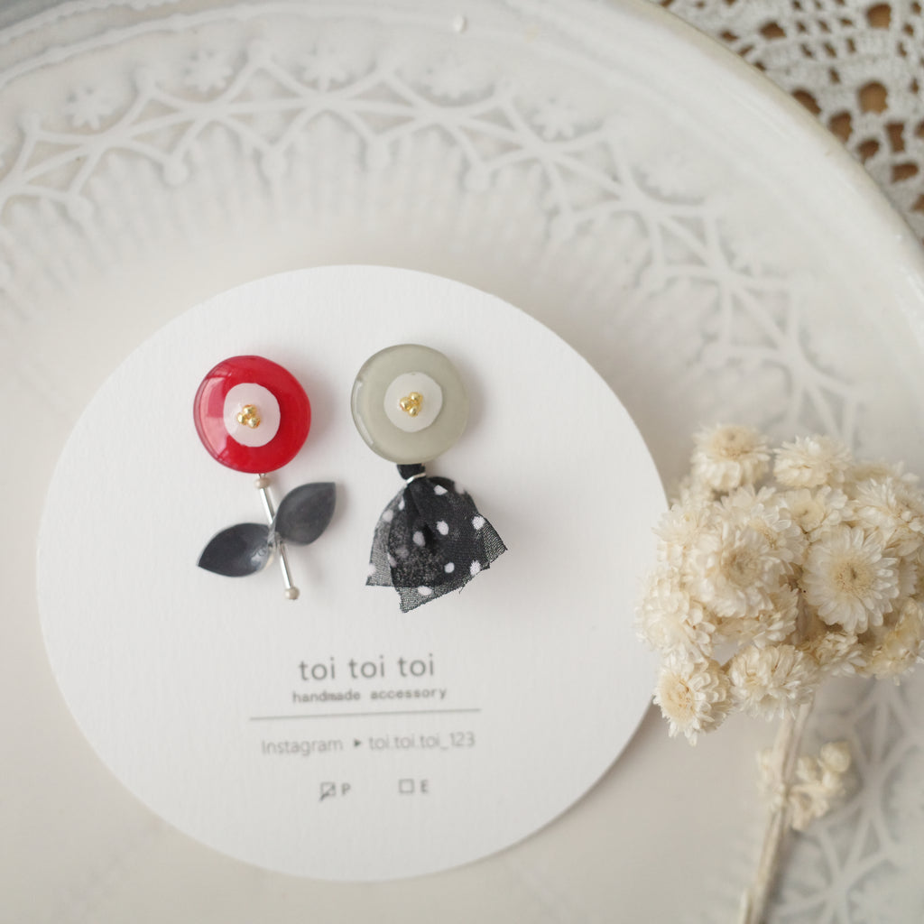 toi toi toi Handmade Accessories - Flower Earrings (Greige x Red) (Pre-order)