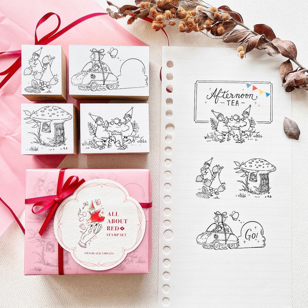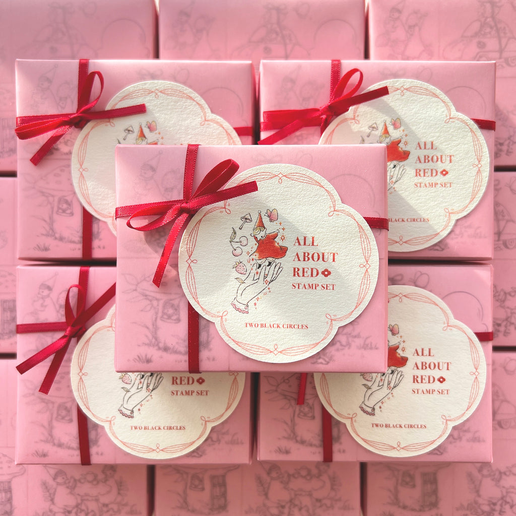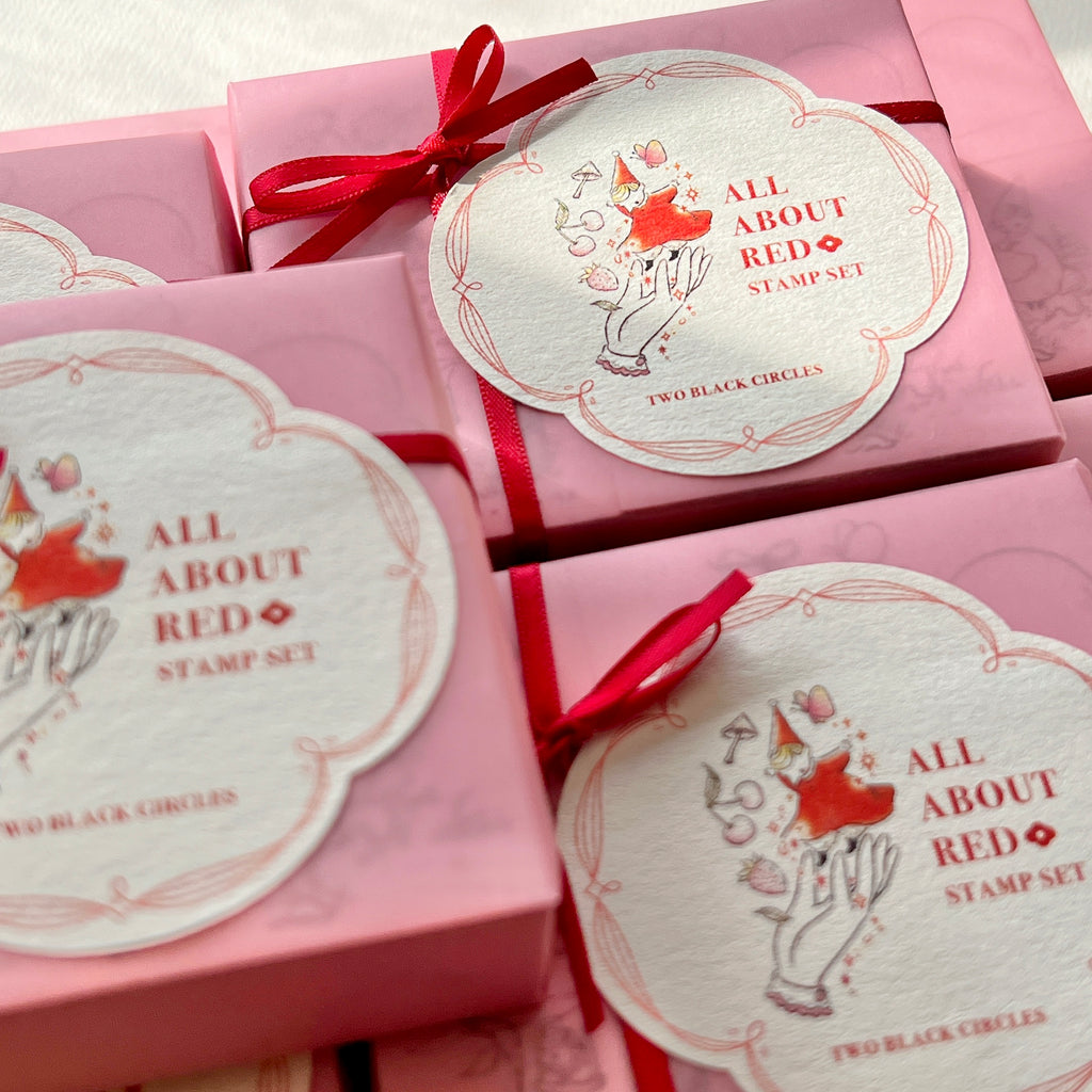 Two black circles - 【All About Red】Machine-made stamp set (4 Stamps)