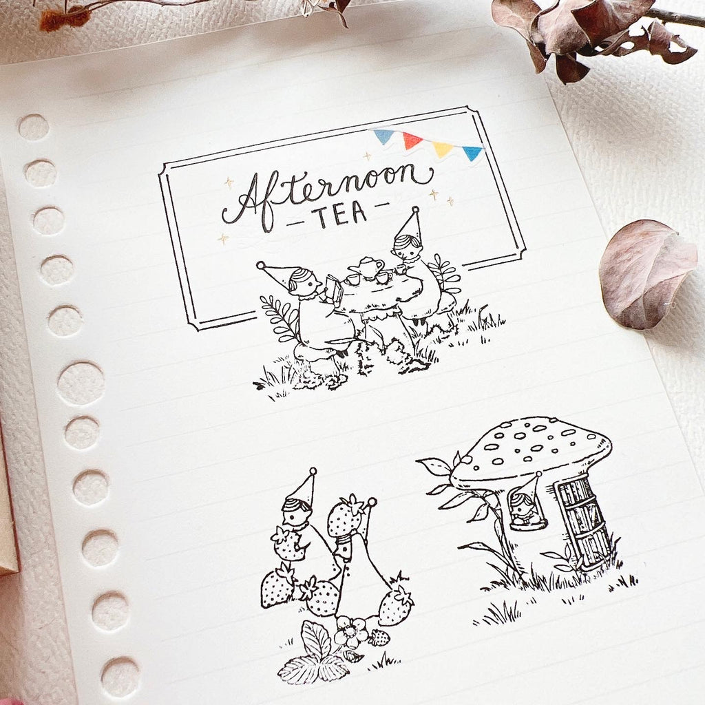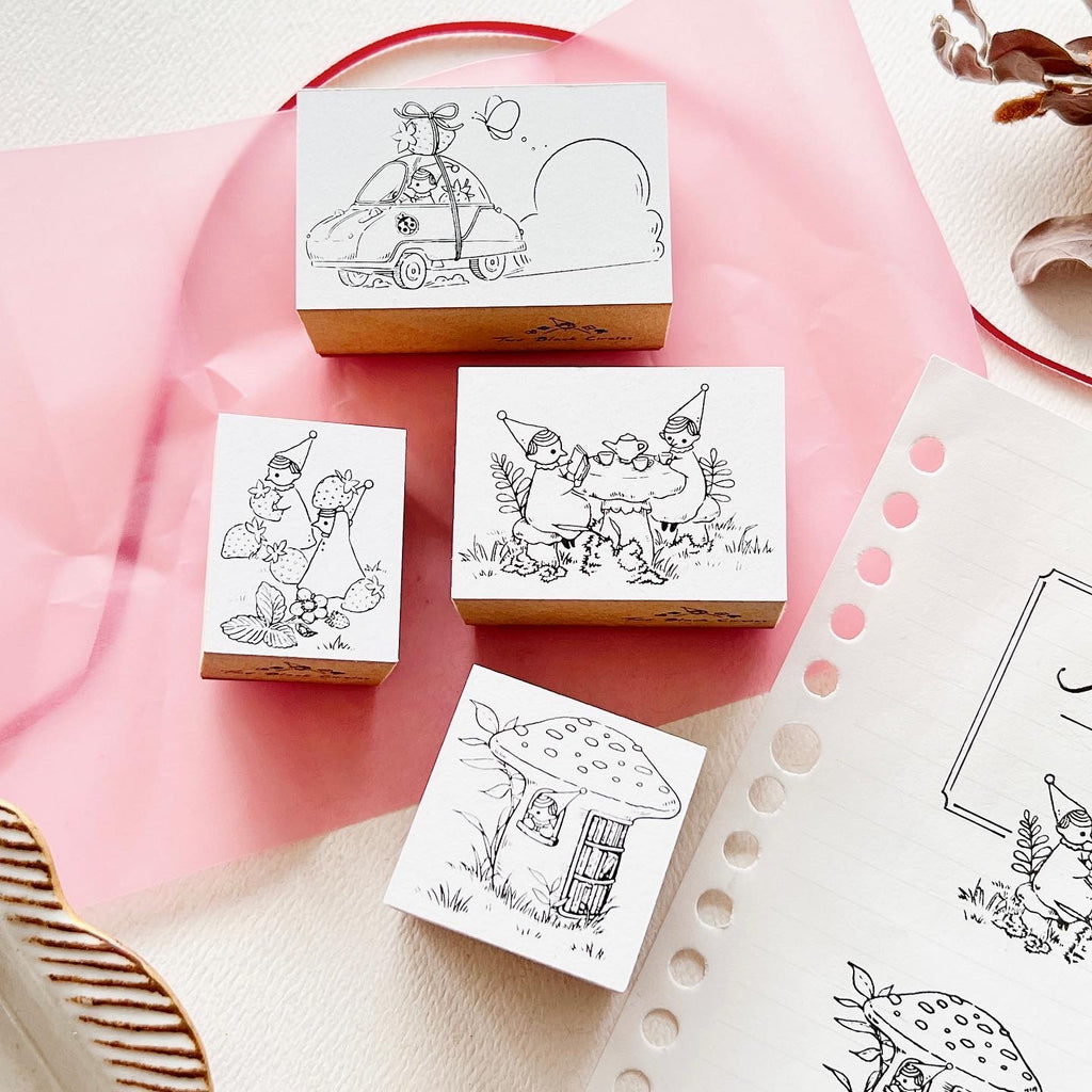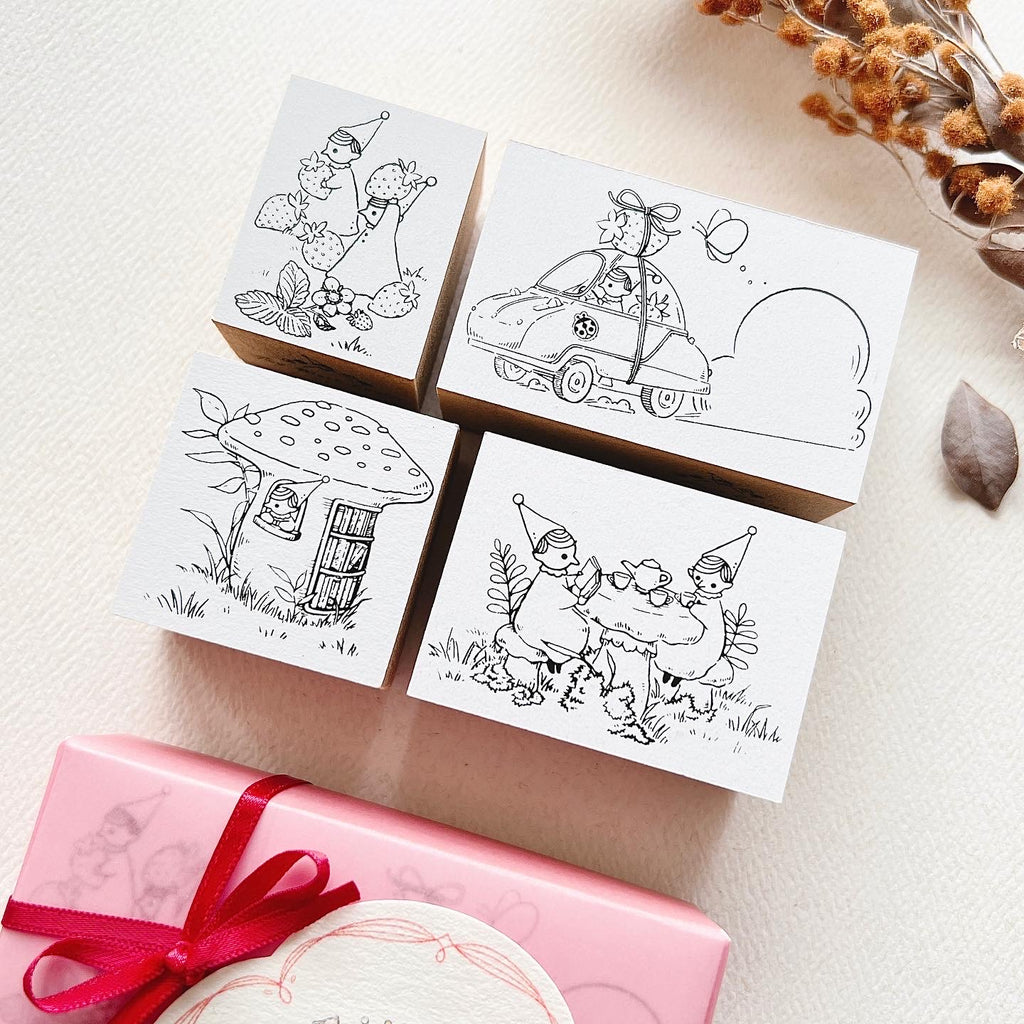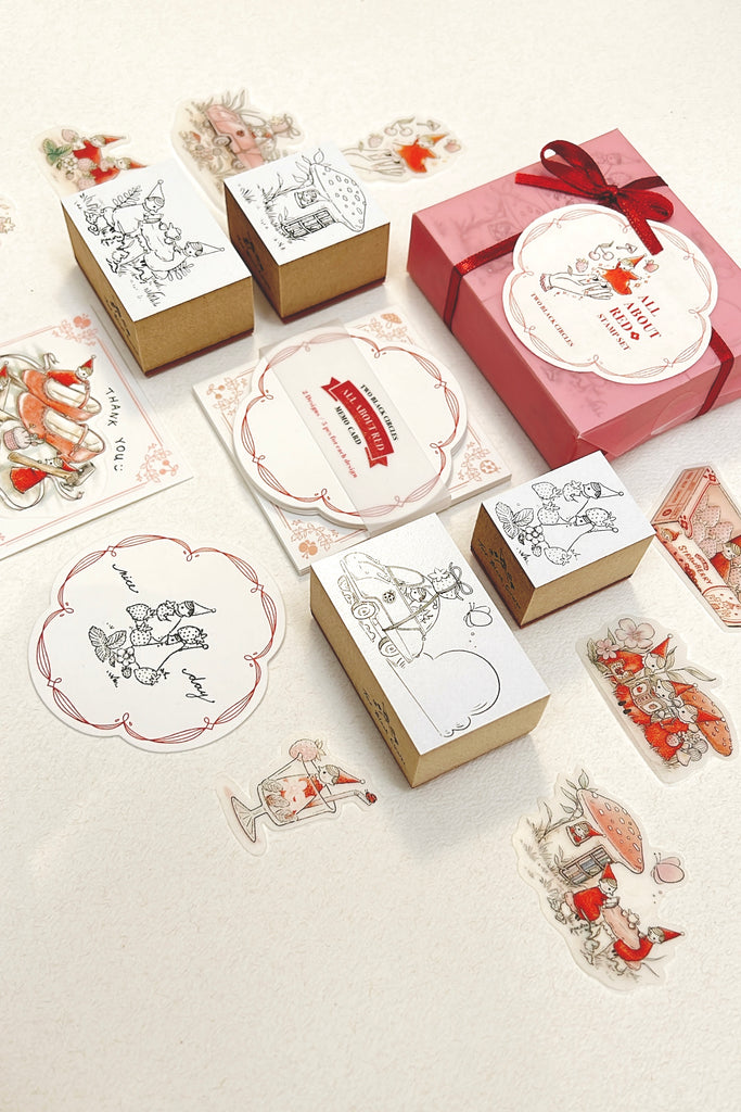 Two black circles - 【All About Red】Machine-made stamp set (4 Stamps)